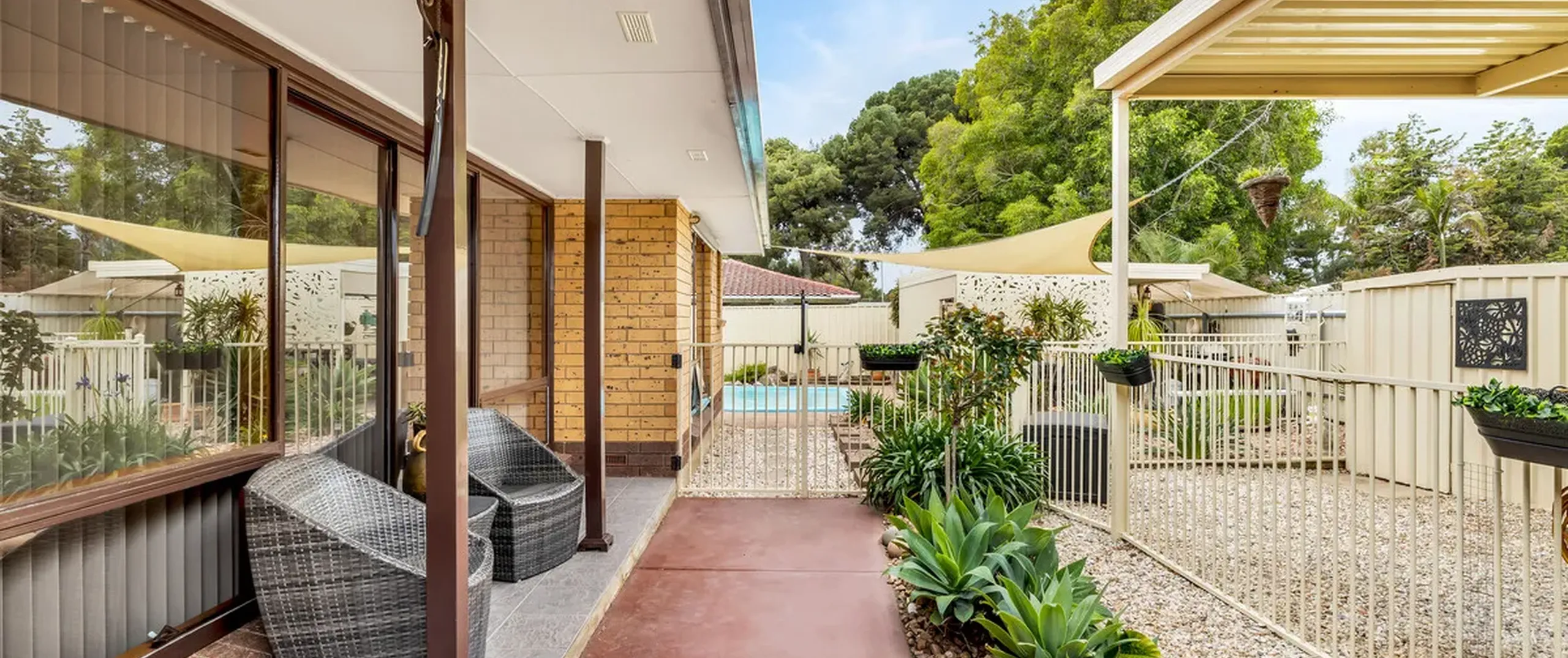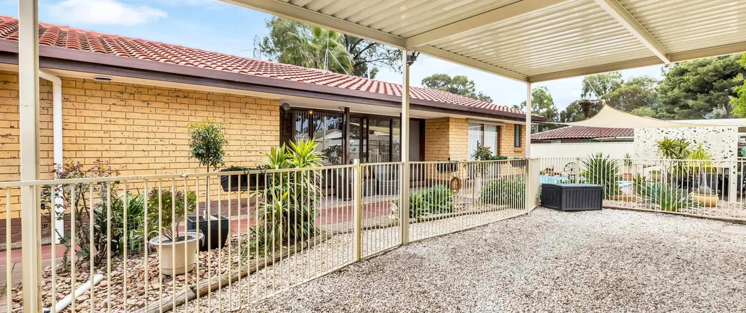 - Gated open carport with room for caravan or multiple vehicles