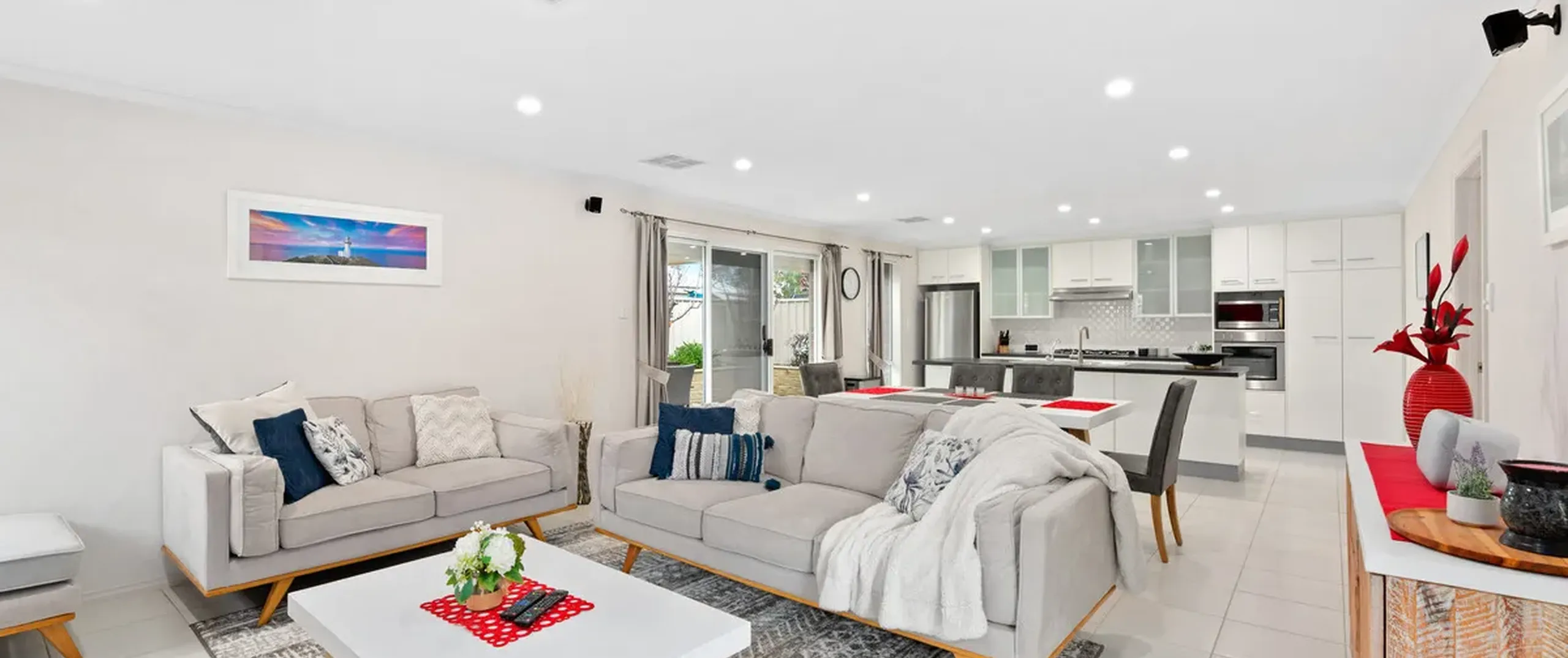 - Spacious open plan living and dining complete with TV niche and downlights throughout