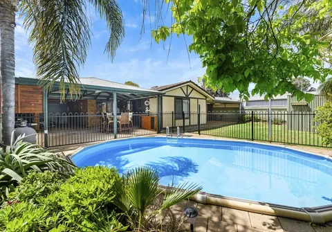 If you love to cook, the timber kitchen is the culinary haven you’ve been waiting for. Gas cooking and ample storage are on offer, along with a breakfast bar and views over the poolside deck. A 5.1 KW solar electrical system with 27 panels, a separate laundry, ceiling fans and plenty of room for the boat or caravan, are just a few of the extra features on offer.