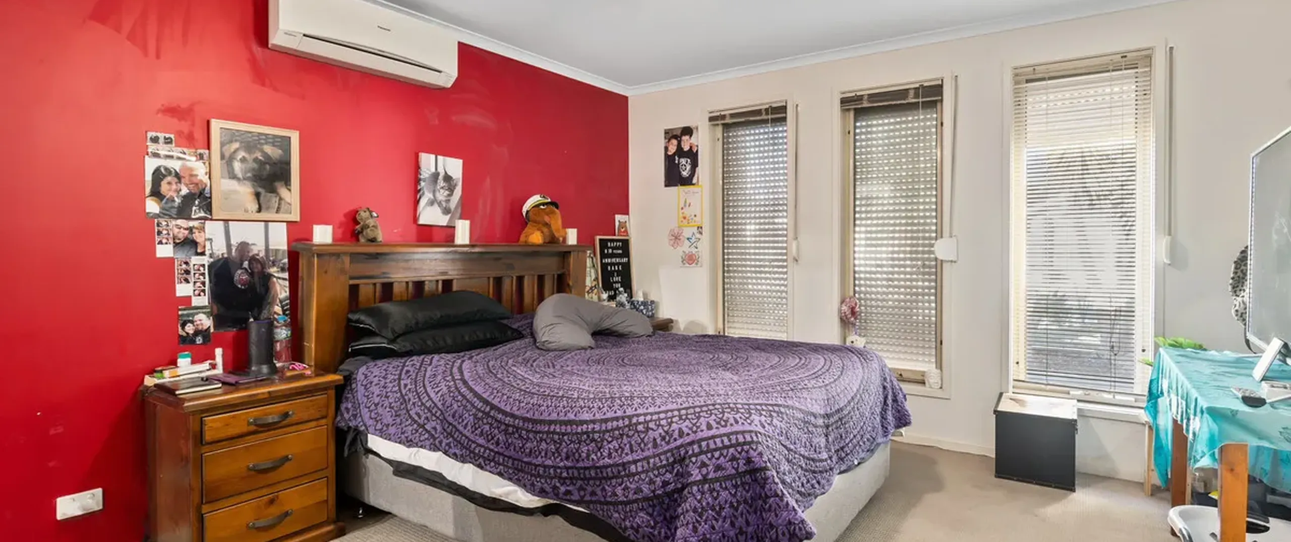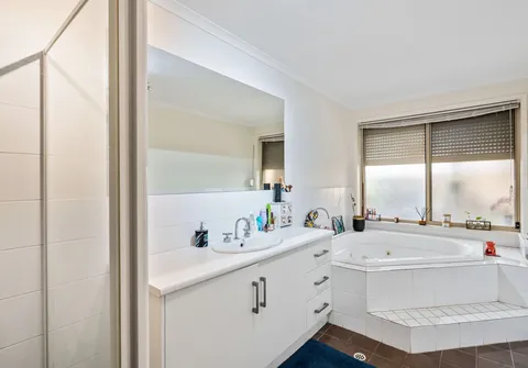 - Attractive master bedroom boasting a walk in robe, ensuite with spa bath, ceiling fan and split system air conditioner for year round comfort