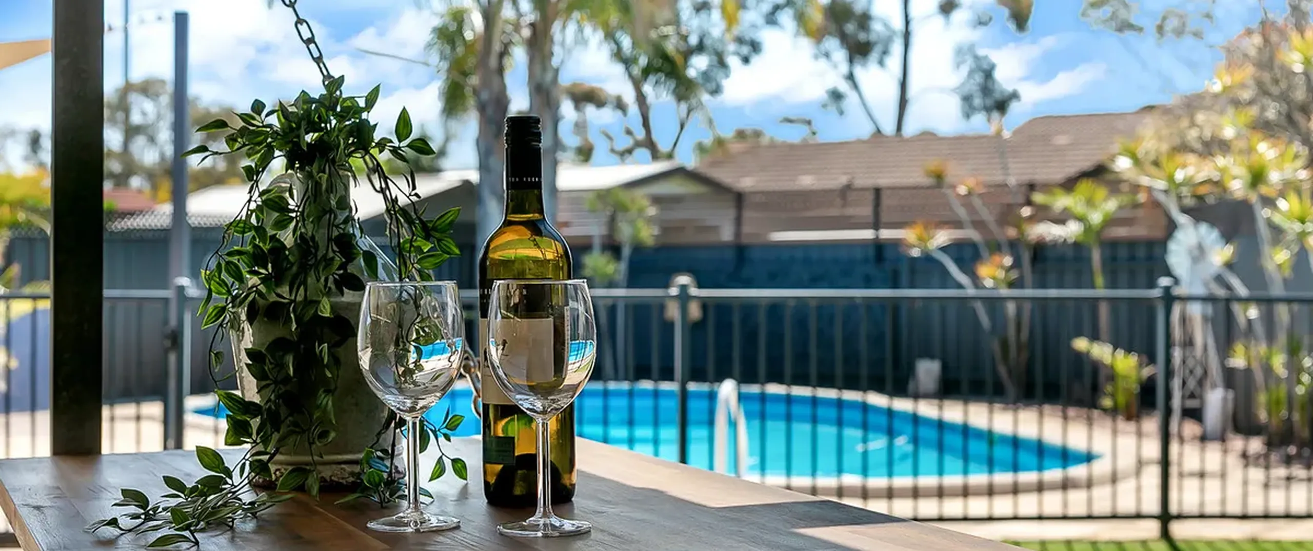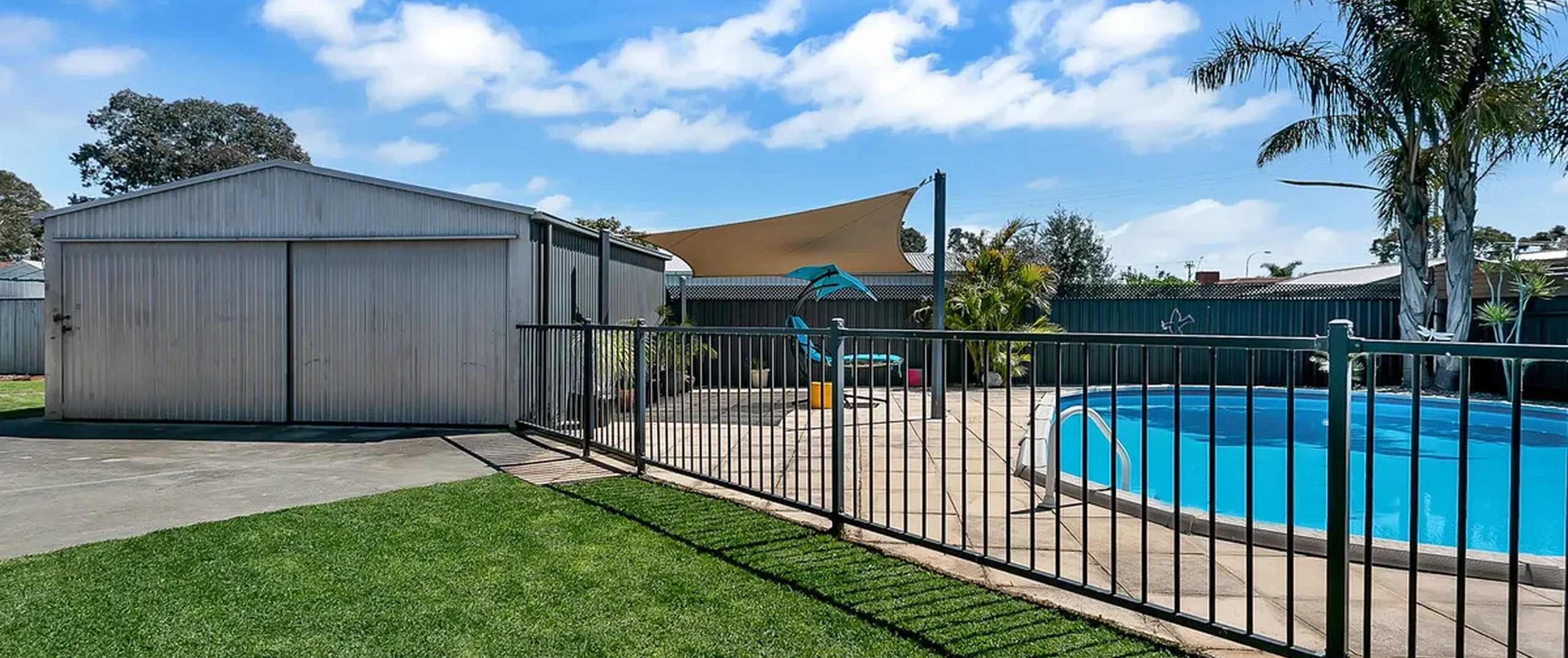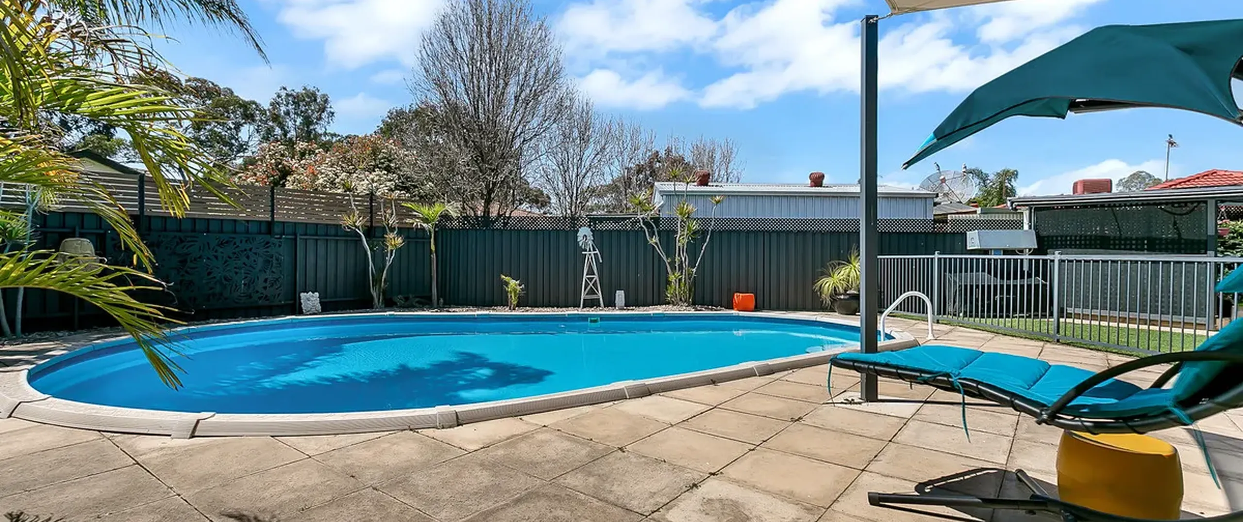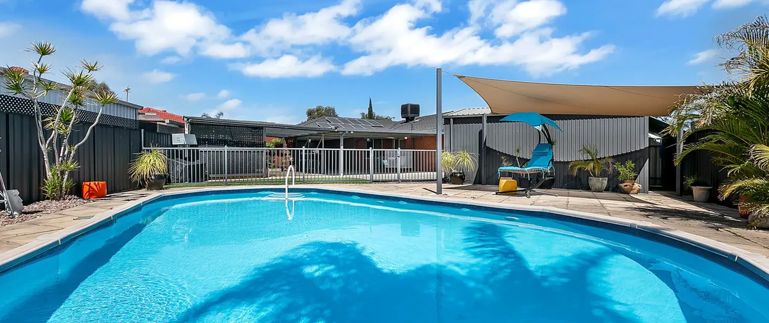 - Solar heated salt chlorinated in-ground swimming pool, featuring a shade sail, perfect for a hot summers day