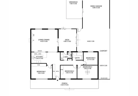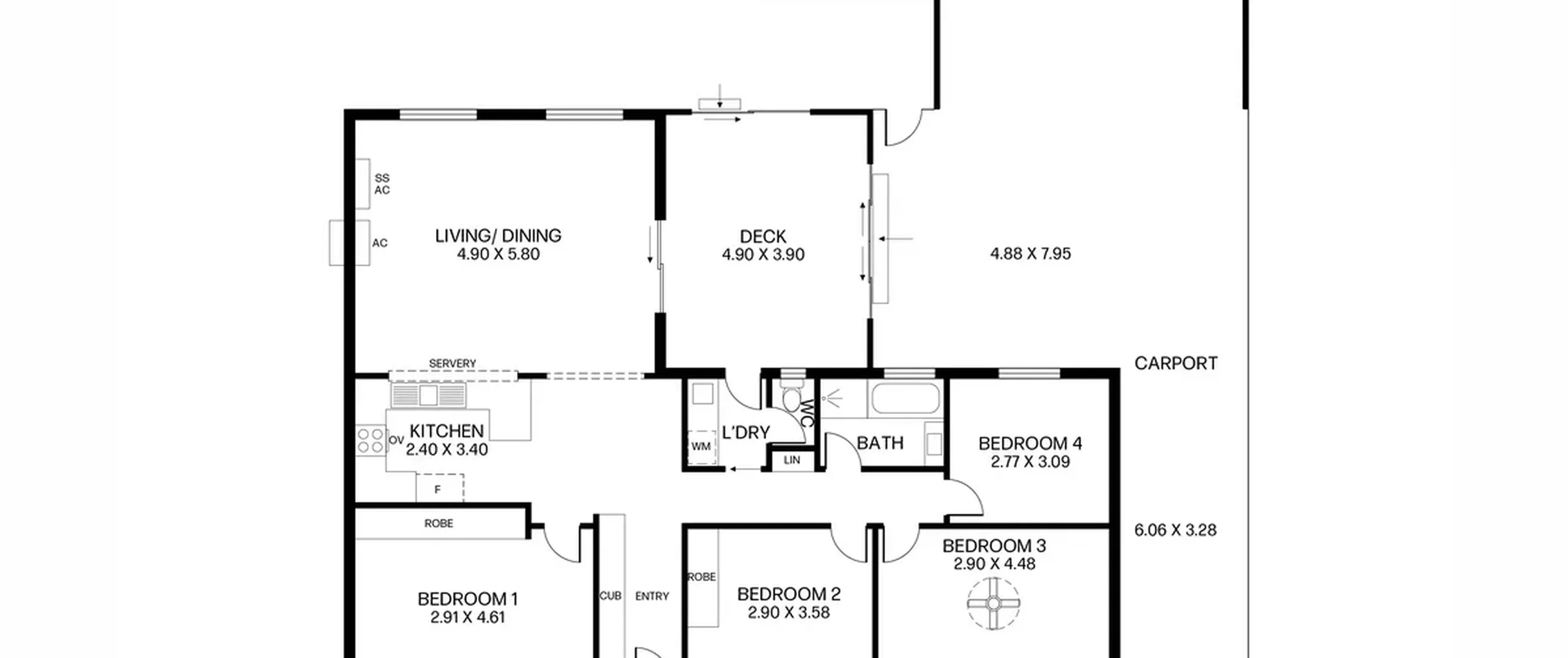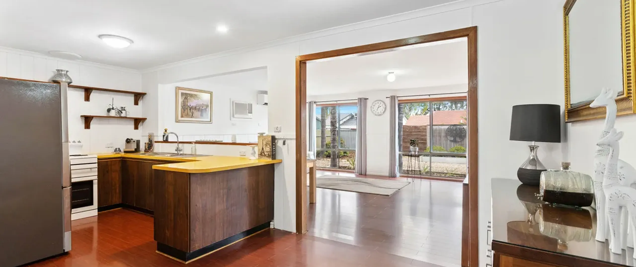 Inside, you will find a seamless flow from the kitchen through to the living/dining space and straight out to the outdoor area. A spacious kitchen complete with ample cupboard and bench space and feature timber shelving. The layout of the home is completed with four generous bedrooms serviced by a timeless bathroom with convenient separate toilet.