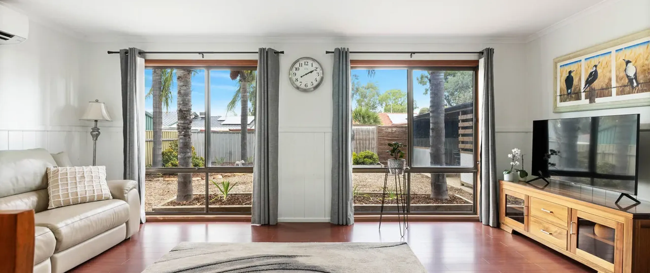 - Spacious light filled living/dining room with split system air conditioner and wall air conditioning unit