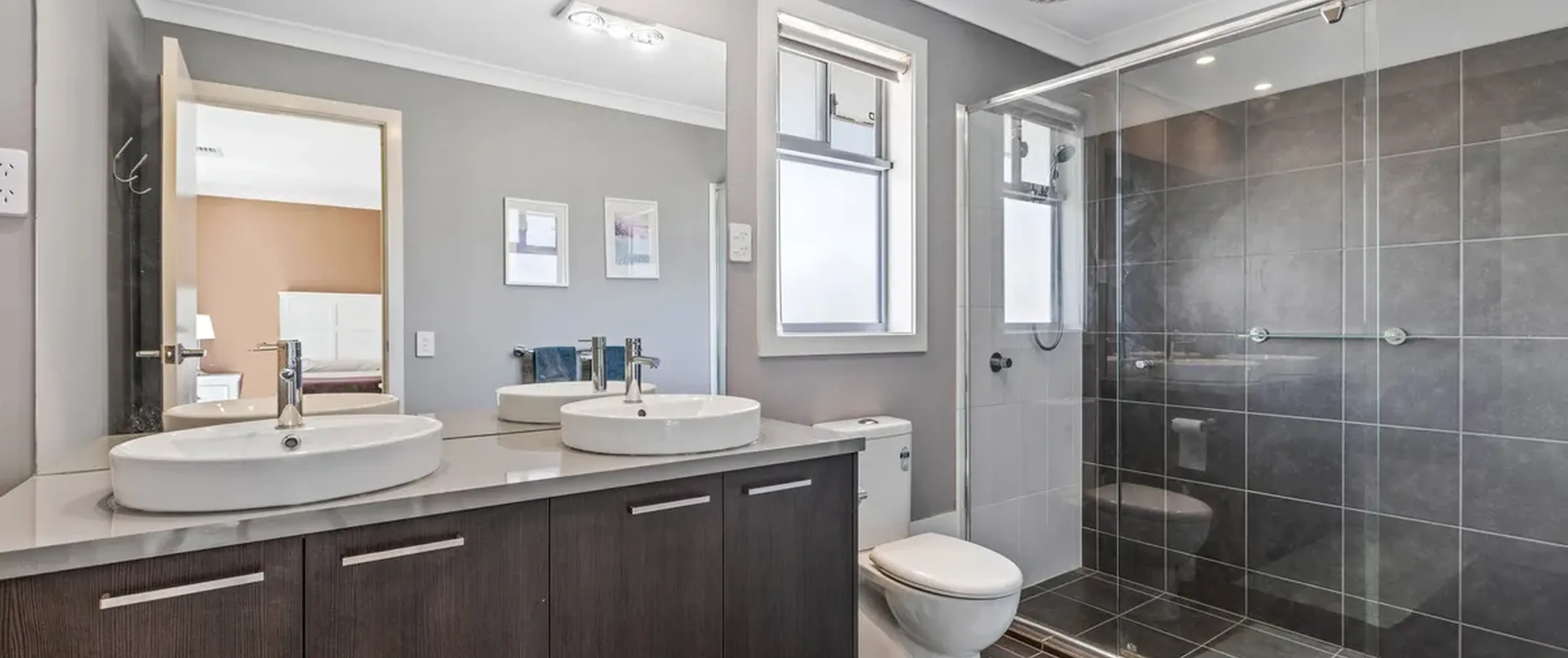 - Large master bedroom with walk-in robe, ensuite offering an oversized shower and his and hers basins and complete with views overlooking the reserve