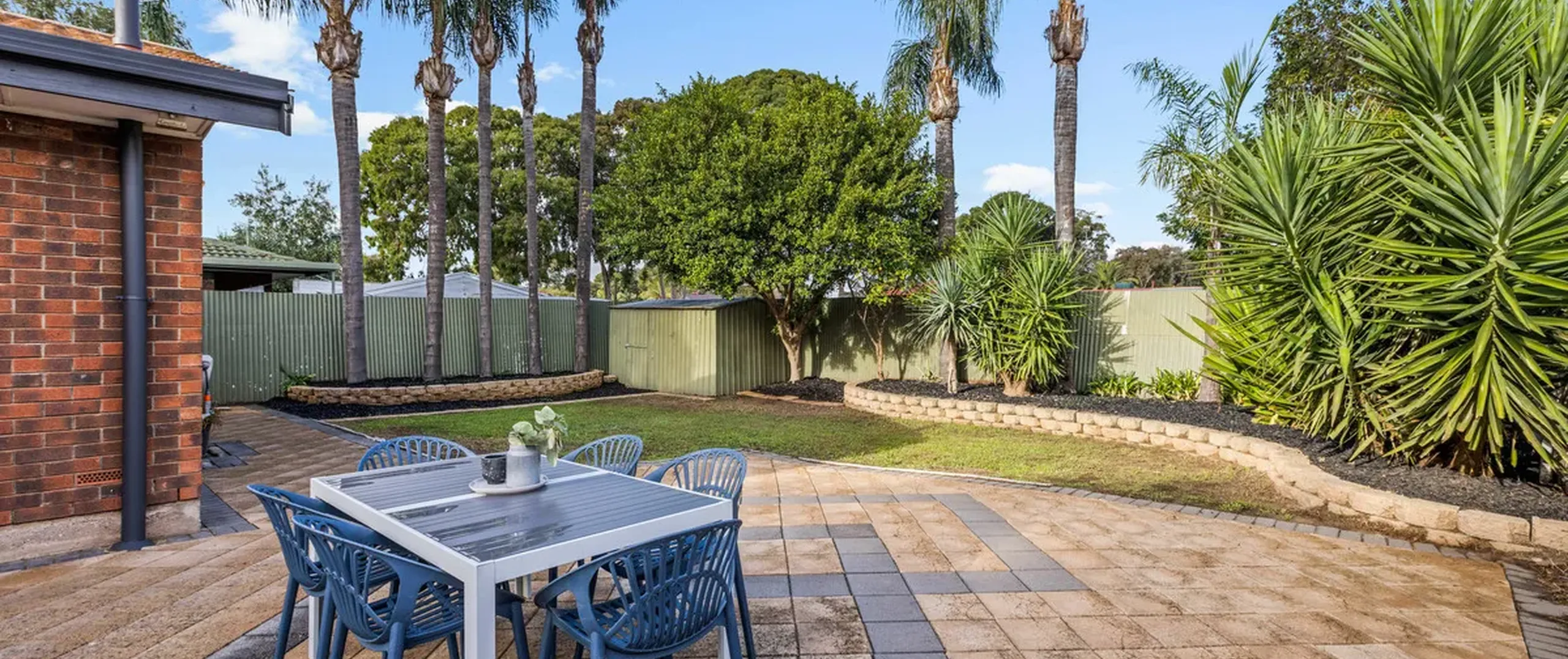 - Paved courtyard overlooking the well-manicured gardens and low-maintenance lawns for kids and furry friends to run free