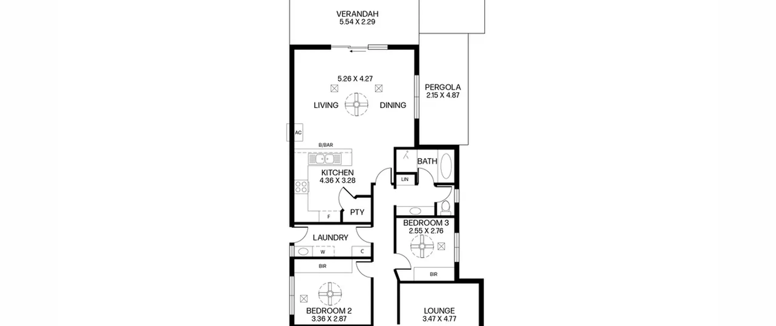 - Bedrooms two and three both complete with built-in robes and ceiling fans