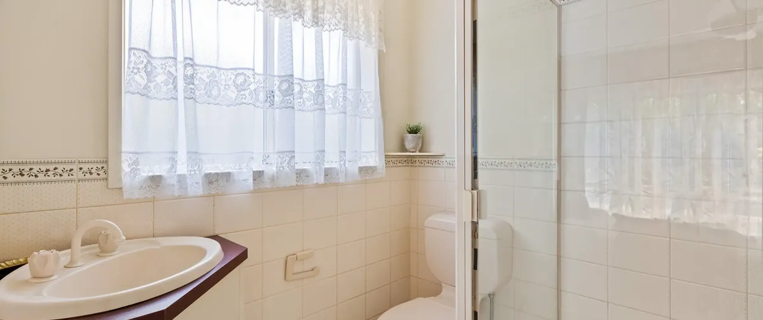 - Three-way main bathroom with separate bath and shower