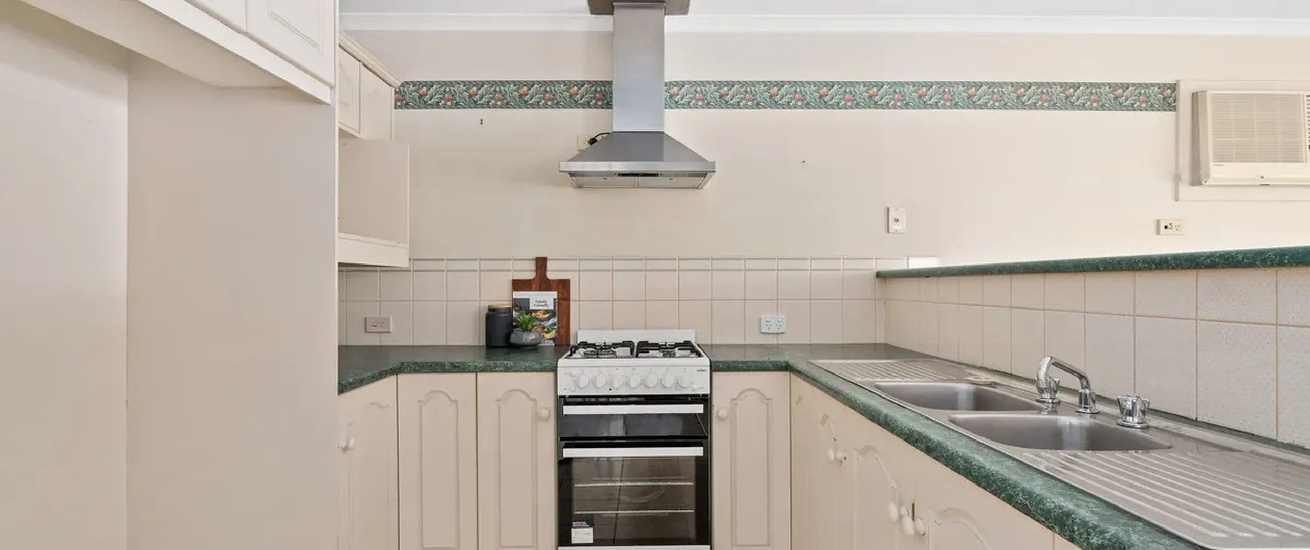 - Kitchen with gas cooktop and ample bench and cupboard space