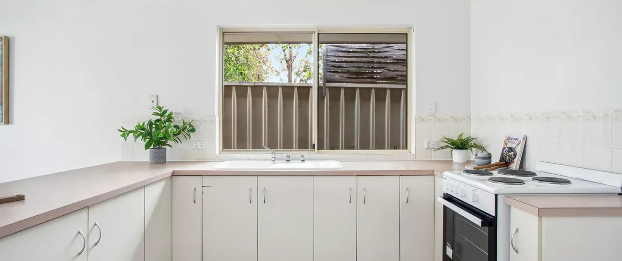 - Timeless kitchen with gas cooktop, and ample cupboard and bench storage
