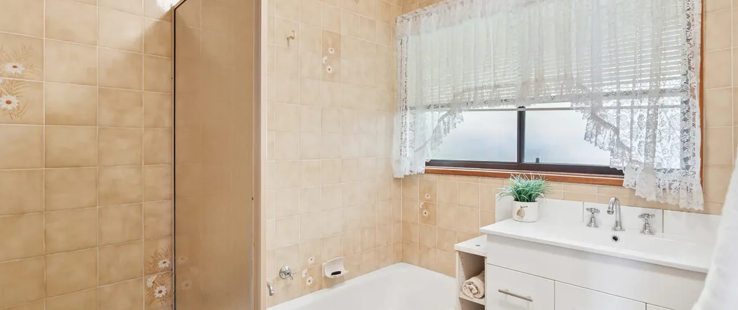 - Main bathroom with shower, floor to ceiling tiles and separate toilet for convenience