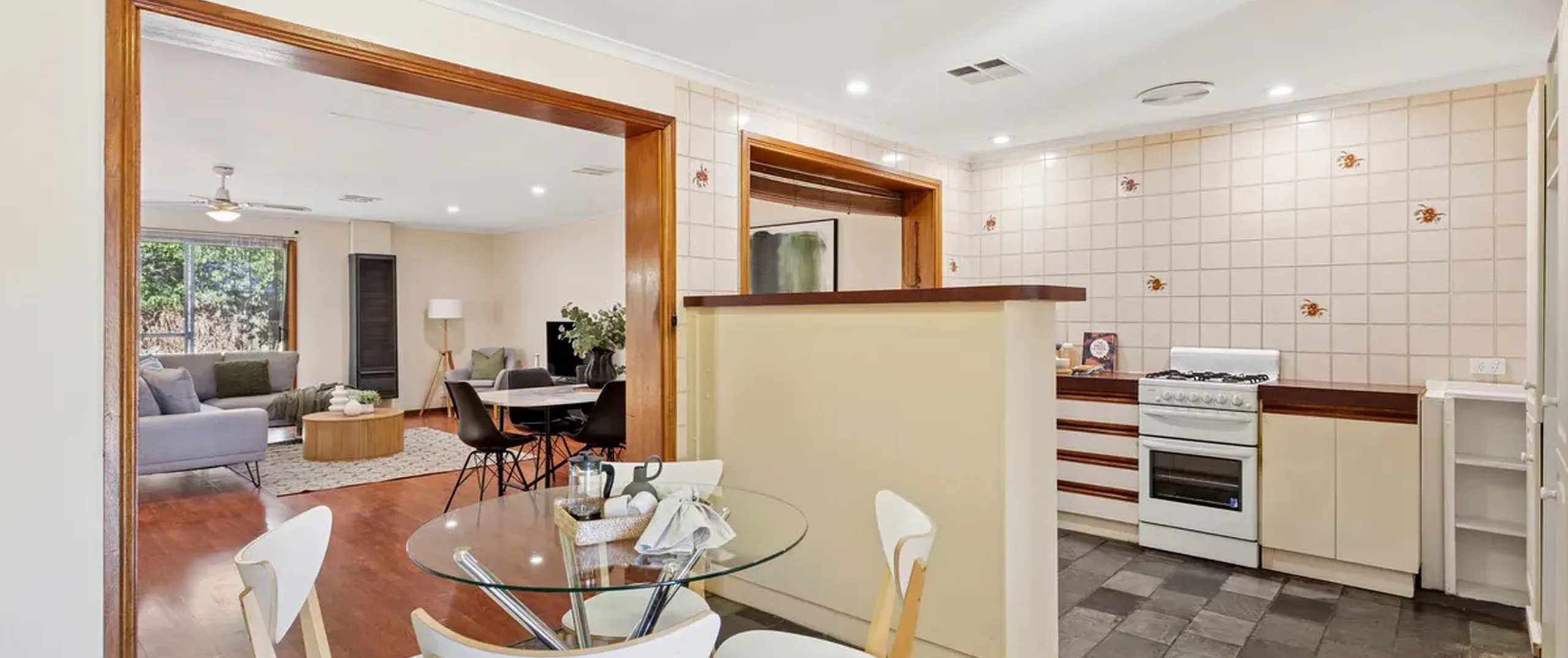 Step inside to a functional and inviting layout featuring three well-sized bedrooms and a central bathroom. The kitchen is well-equipped with ample bench and cupboard space, gas cooking and a dishwasher, ideal for any home cook. The adjoining meals area is perfect for everyday dining or casual entertaining, while the servery keeps you connected to the spacious living and dining area. Carpeted bedrooms, warm timber-look flooring and ducted air conditioning provide year-round comfort, with gas wall heaters adding extra warmth during the cooler months.