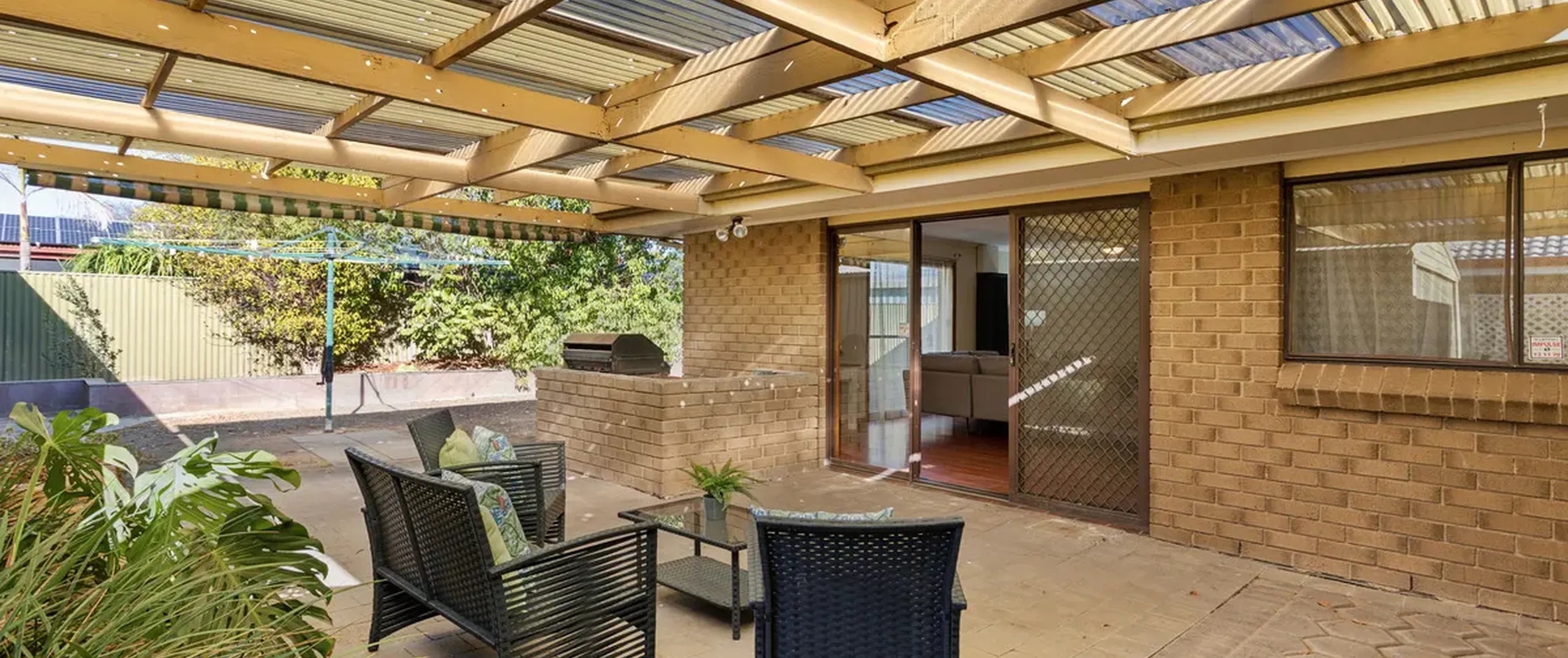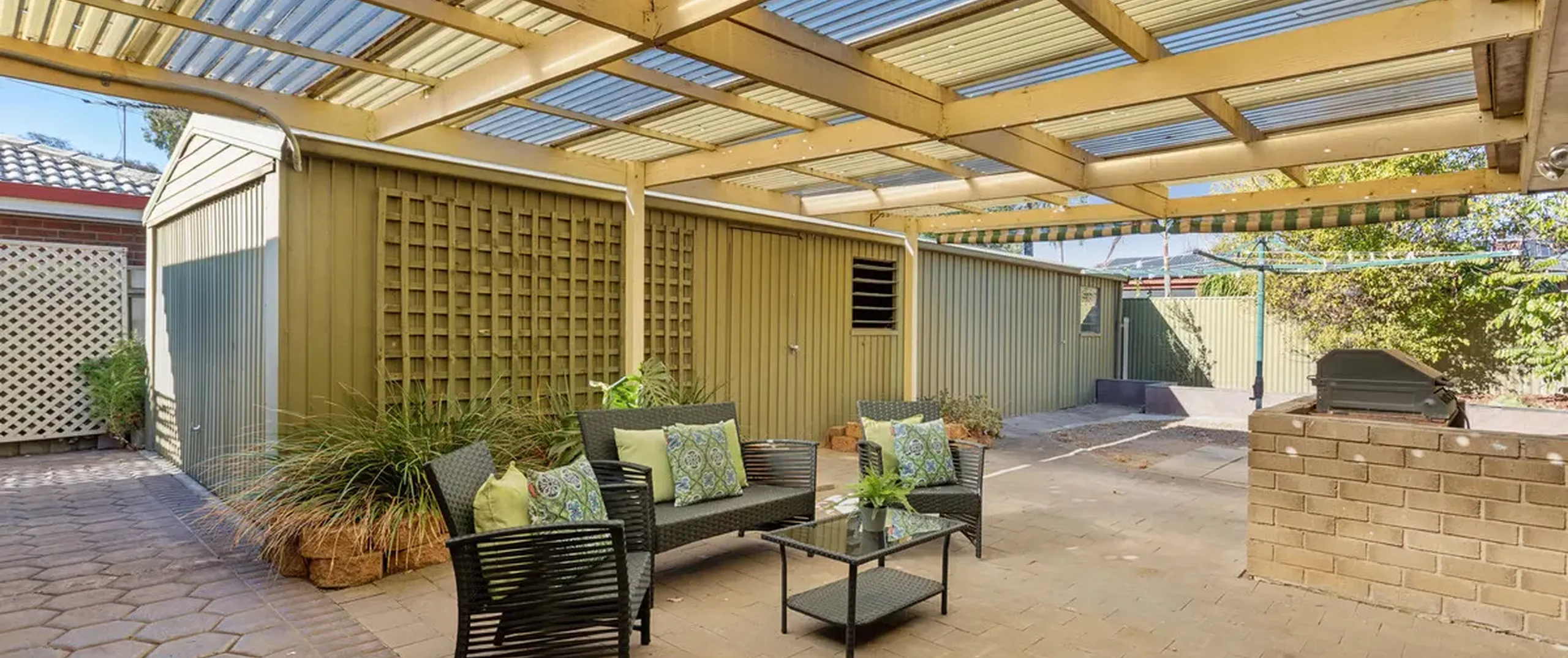 Outdoors, a spacious covered pergola provides an inviting setting for year-round entertaining. Complete with a designated BBQ area, it's ideal for relaxing or hosting guests. The generous yard offers the flexibility to adapt the space to suit your needs.