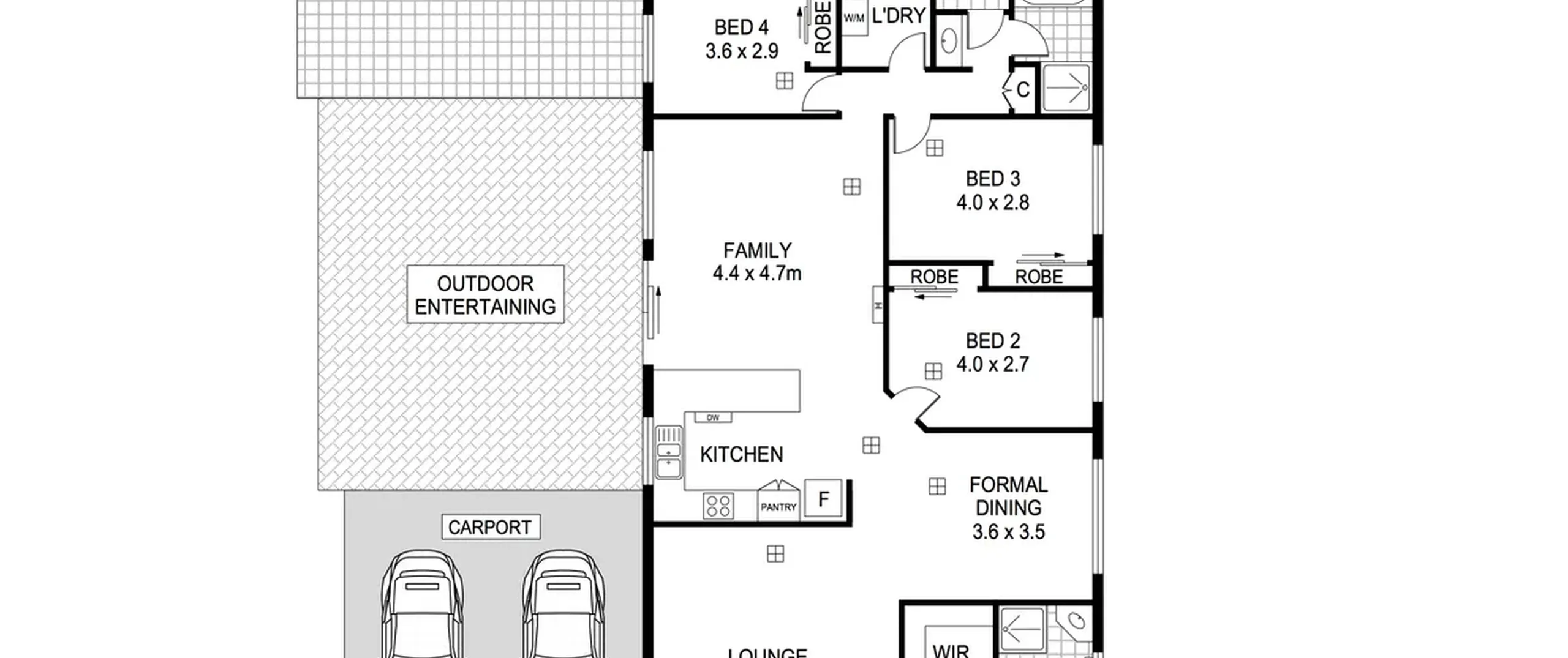 The floorplan offers 3 large tiled living areas comprising of formal lounge, separate formal dine, and a large open plan kitchen overlooking the family room. The four bedrooms all have robes and the master has an ensuite.