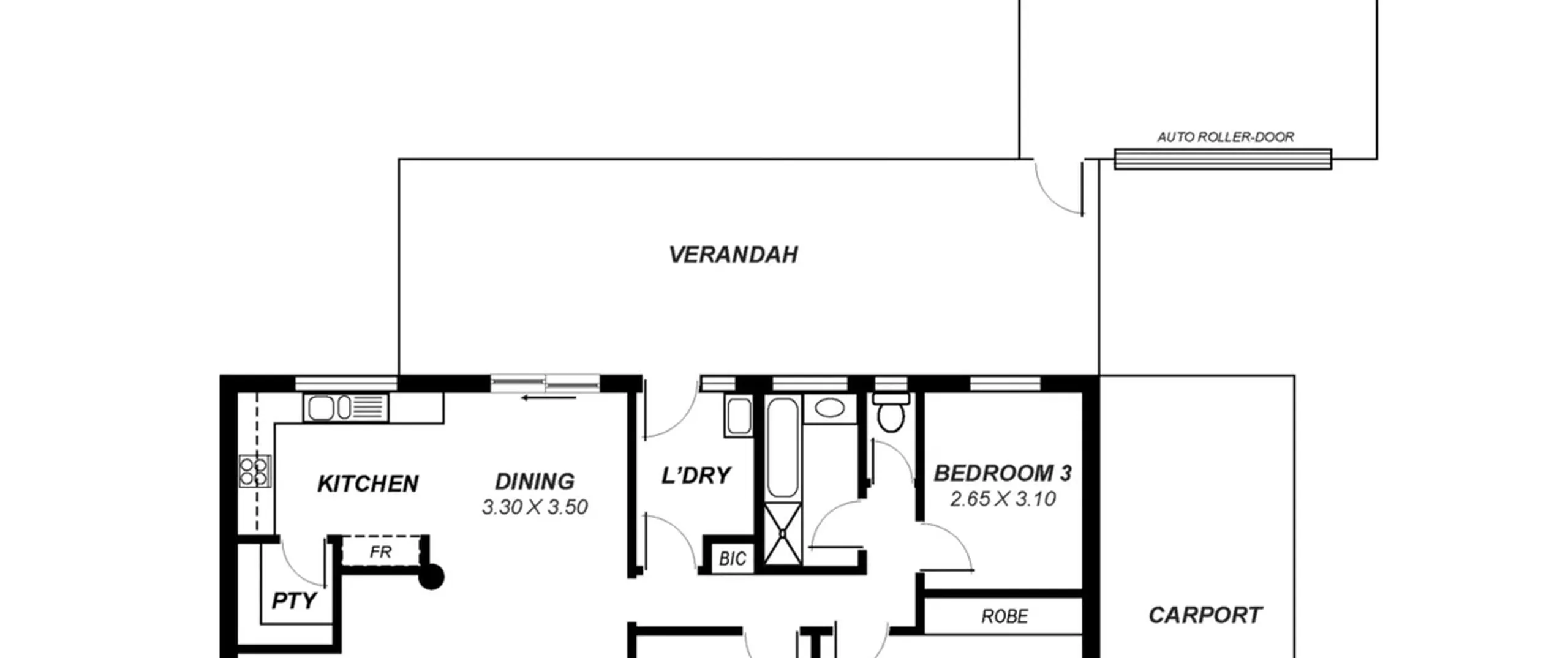 - Drive through carport with room for 2 vehicles and automatic roller door