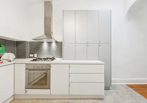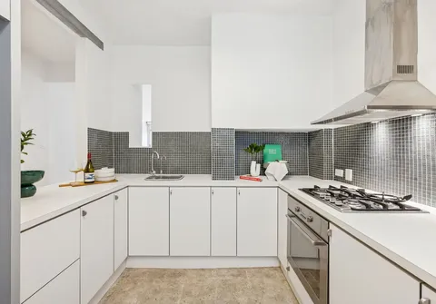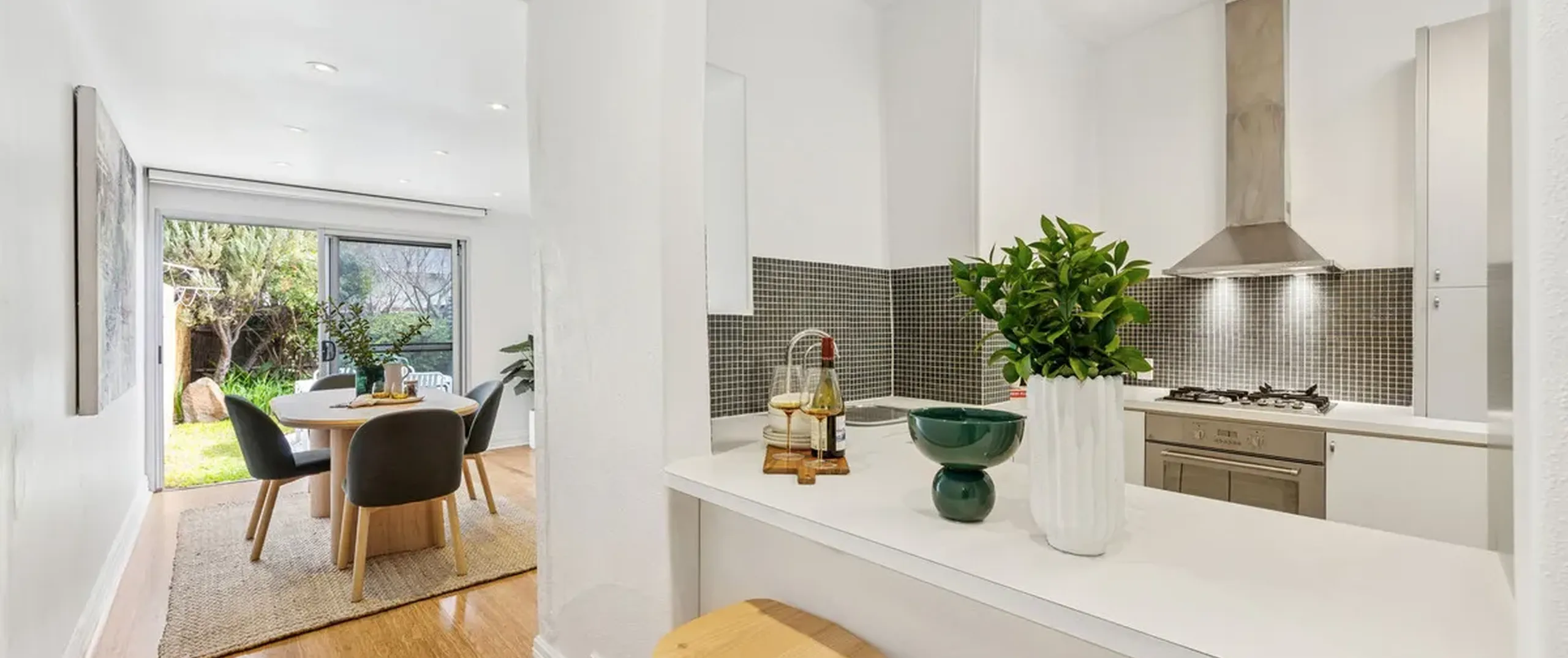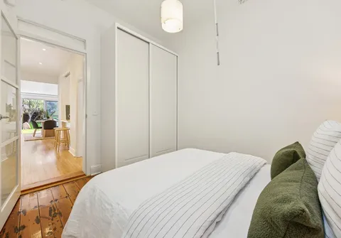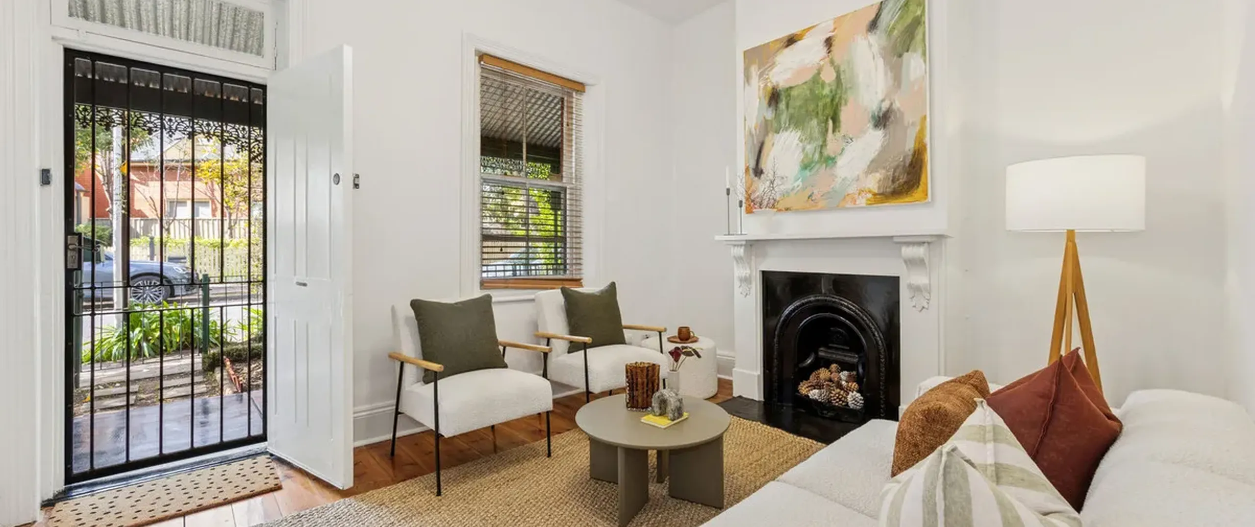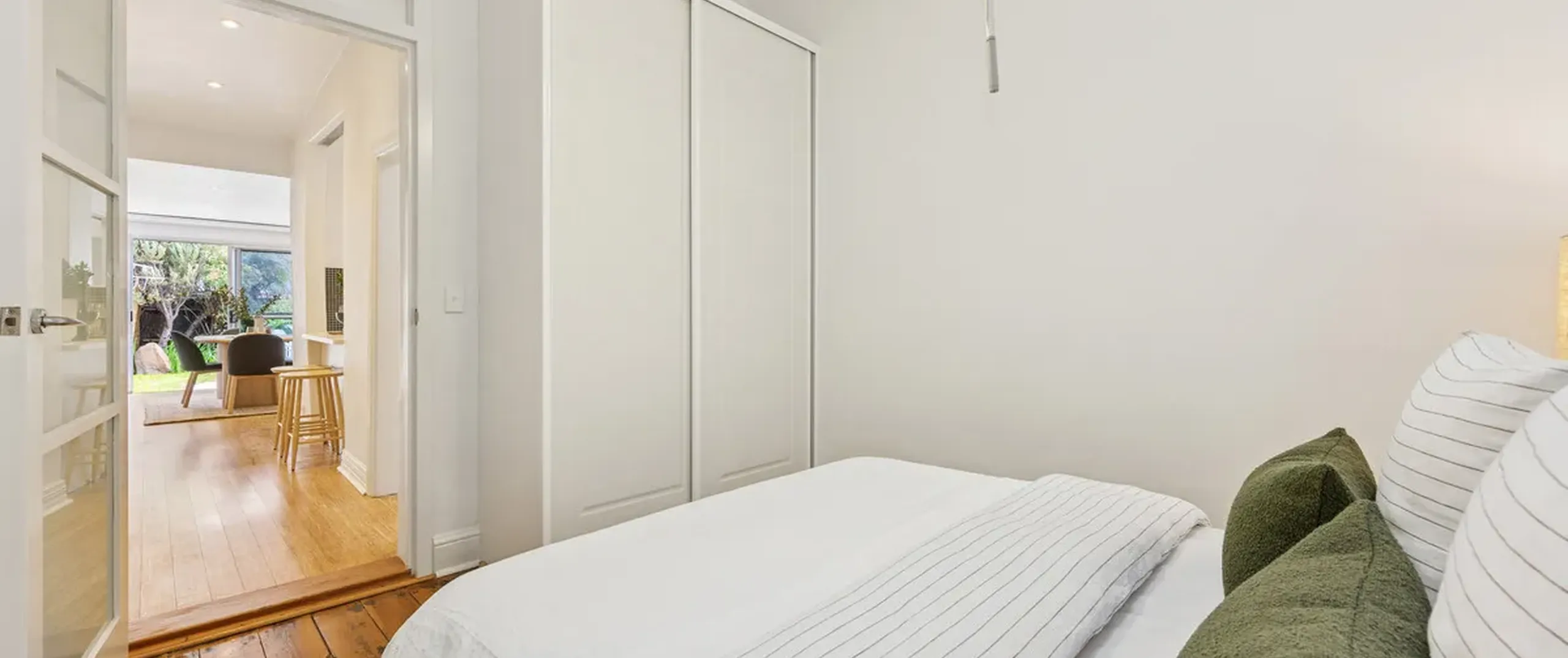 Behind its striking bluestone facade, lofty ceilings and polished Baltic pine floors set a tone of understated luxury. Sunlit interiors flow with ease, where heritage accents have been elevated by thoughtful design.