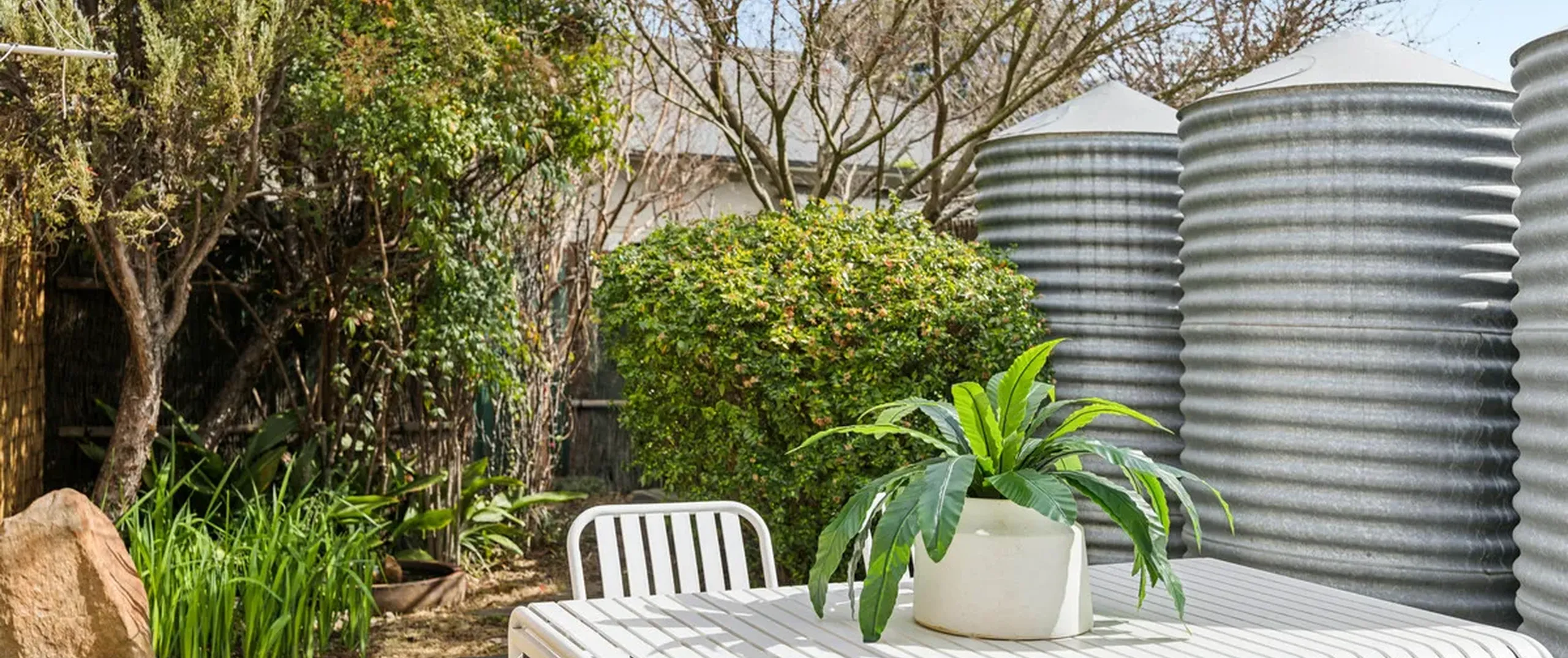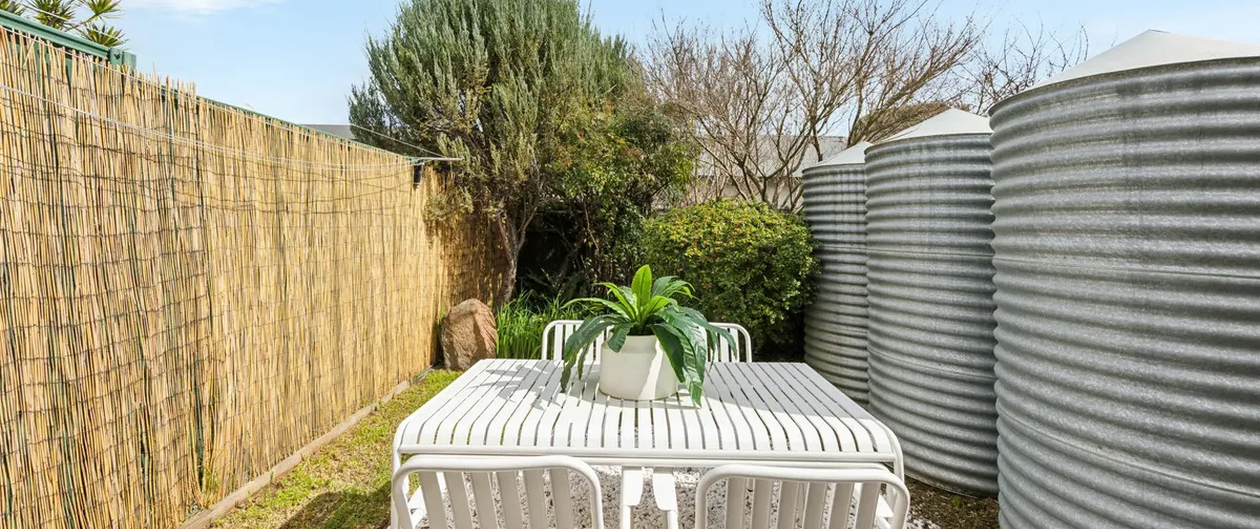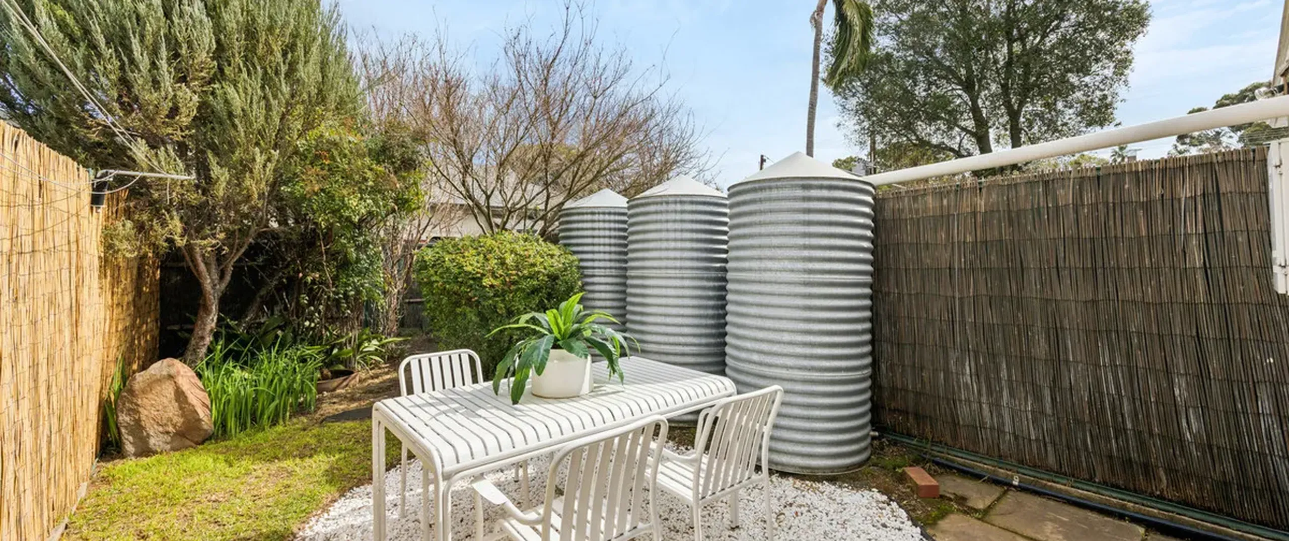 - Landscaped rear garden with three rainwater tanks and garden shed