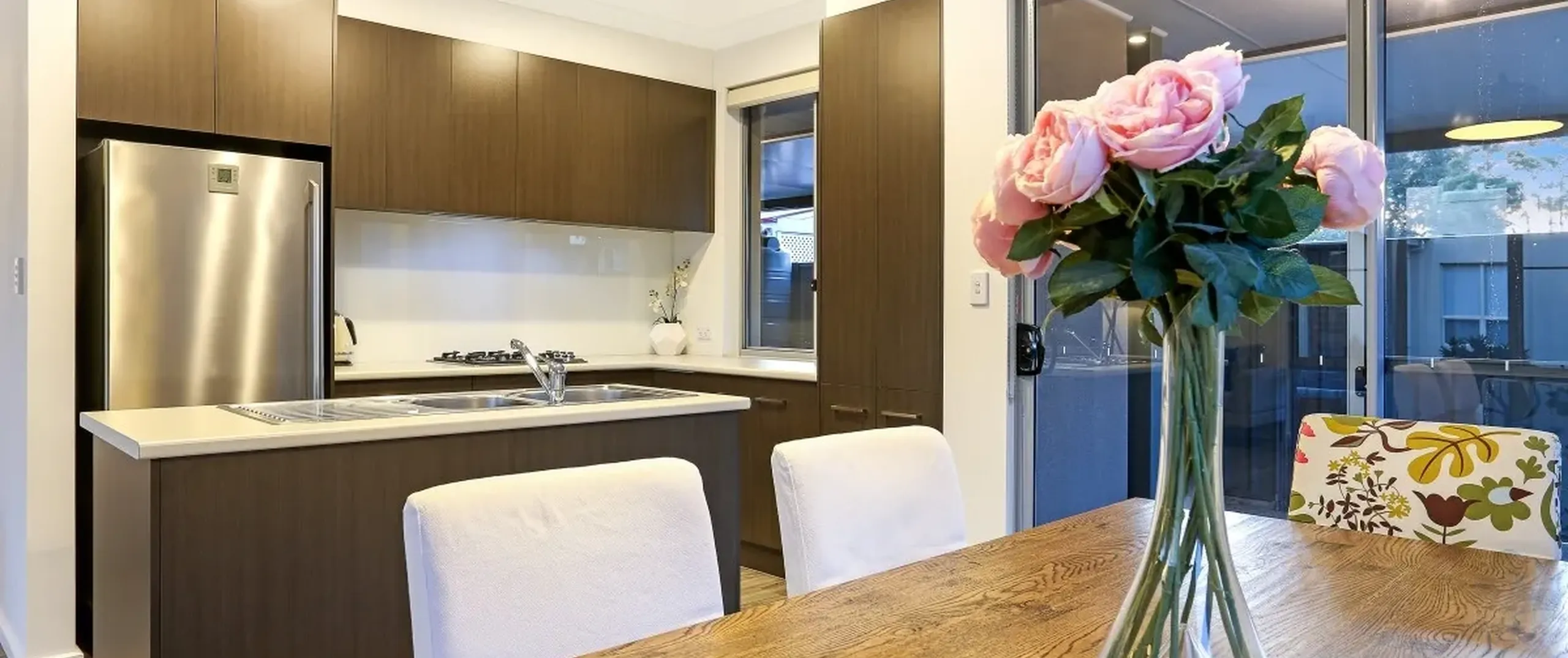 - Stylish kitchen with gas cooktop, ample cupboard space and island bench
