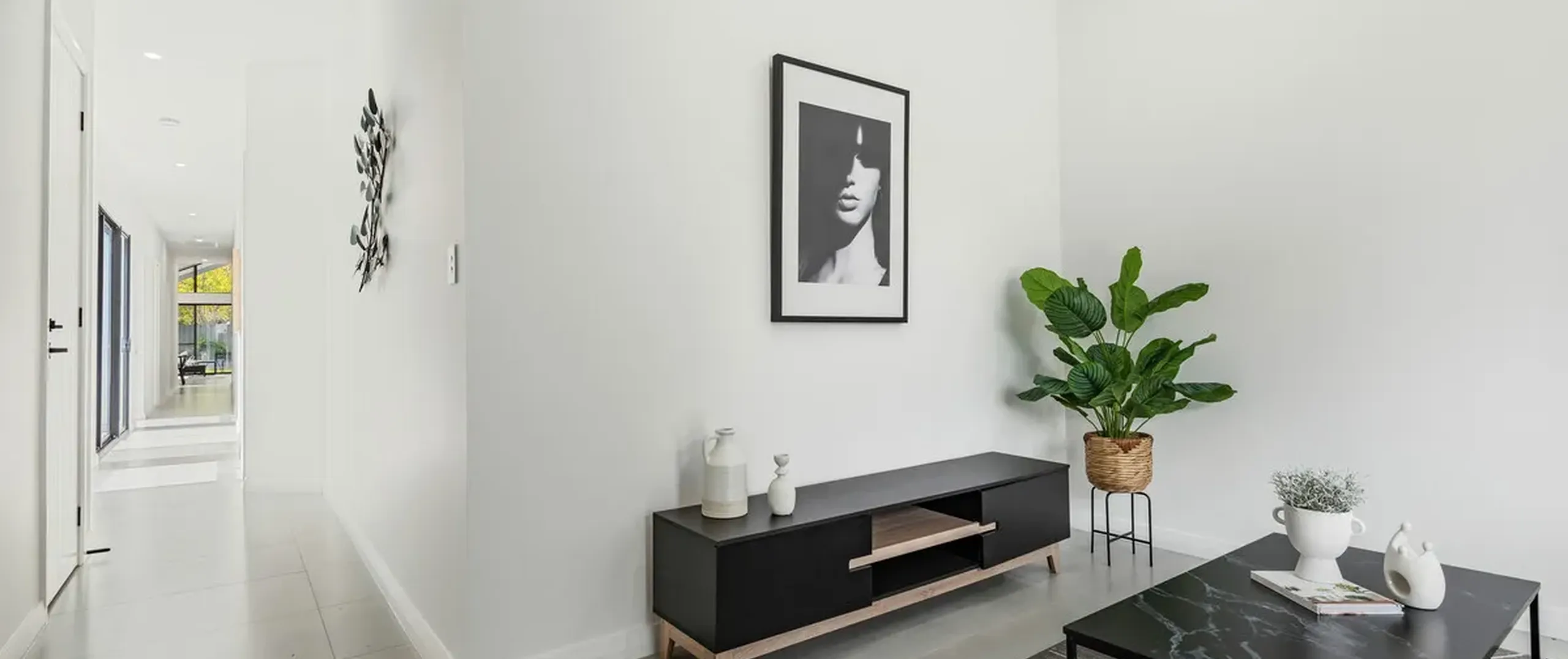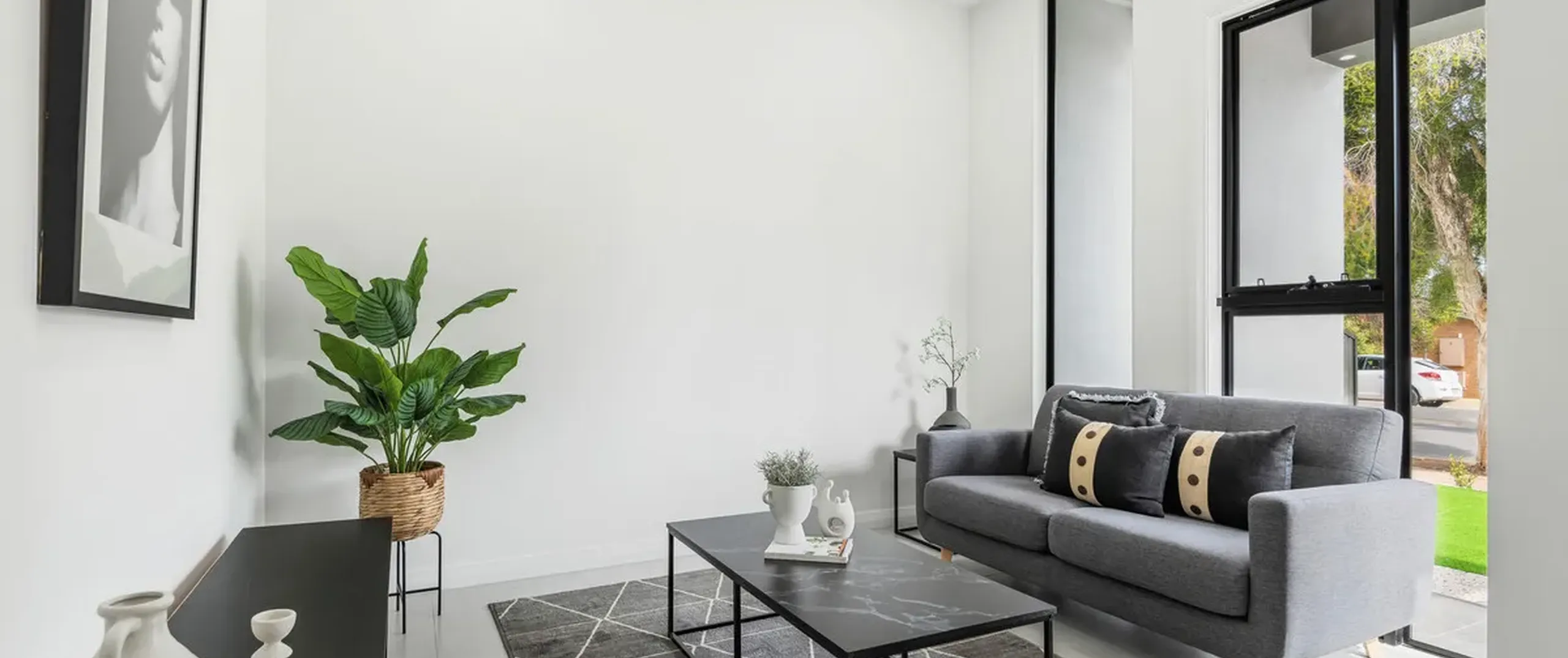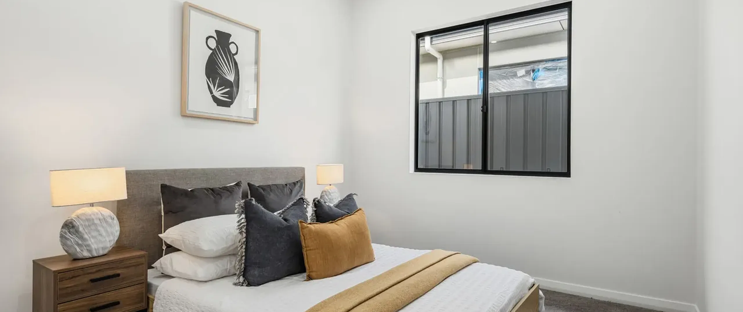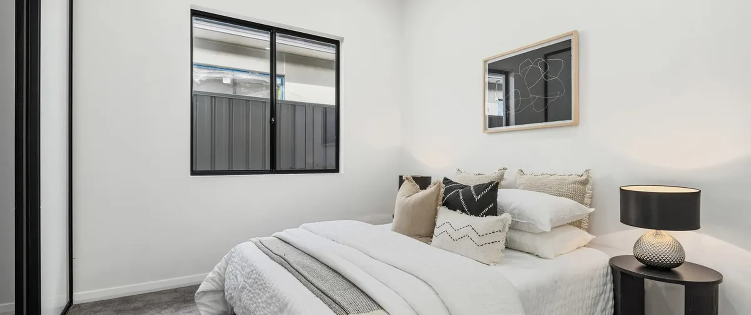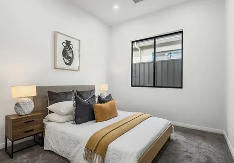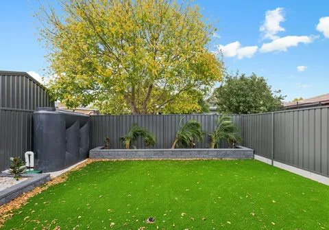 Contemporary, large format tiles flow underfoot from the entrance of the home to the open plan living area, with cosy carpets located in all bedrooms. The modern theme continues through the home with stylish, black framed windows, matte black fixtures, stone benchtops, gorgeous pendant lighting and quality furnishings throughout. A manicured front and rear yard, high ceilings and garage under the main roof complete the offering.