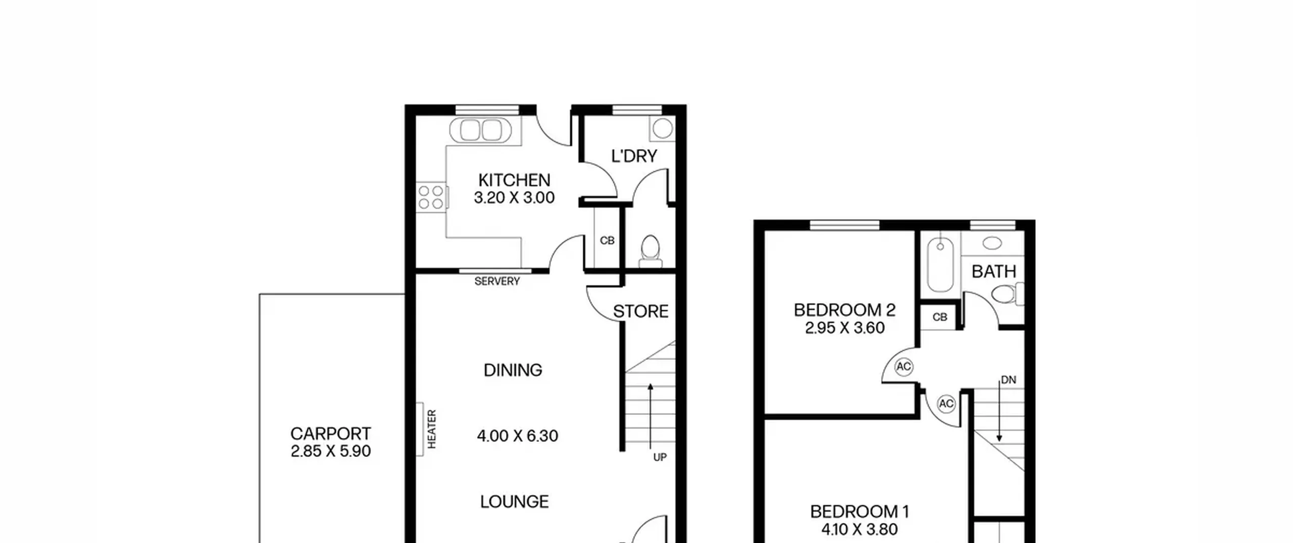 - 2 spacious bedrooms on upper level, main bedroom with built-in robe