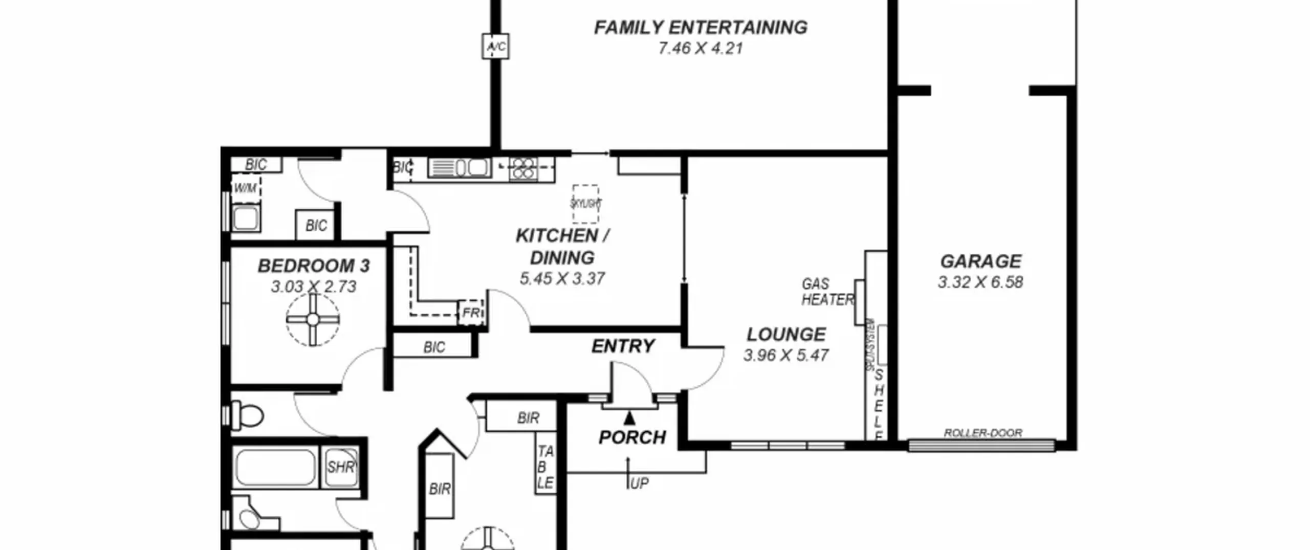 - Large, light filled lounge with built-in shelving, gas heater and split system air conditioner