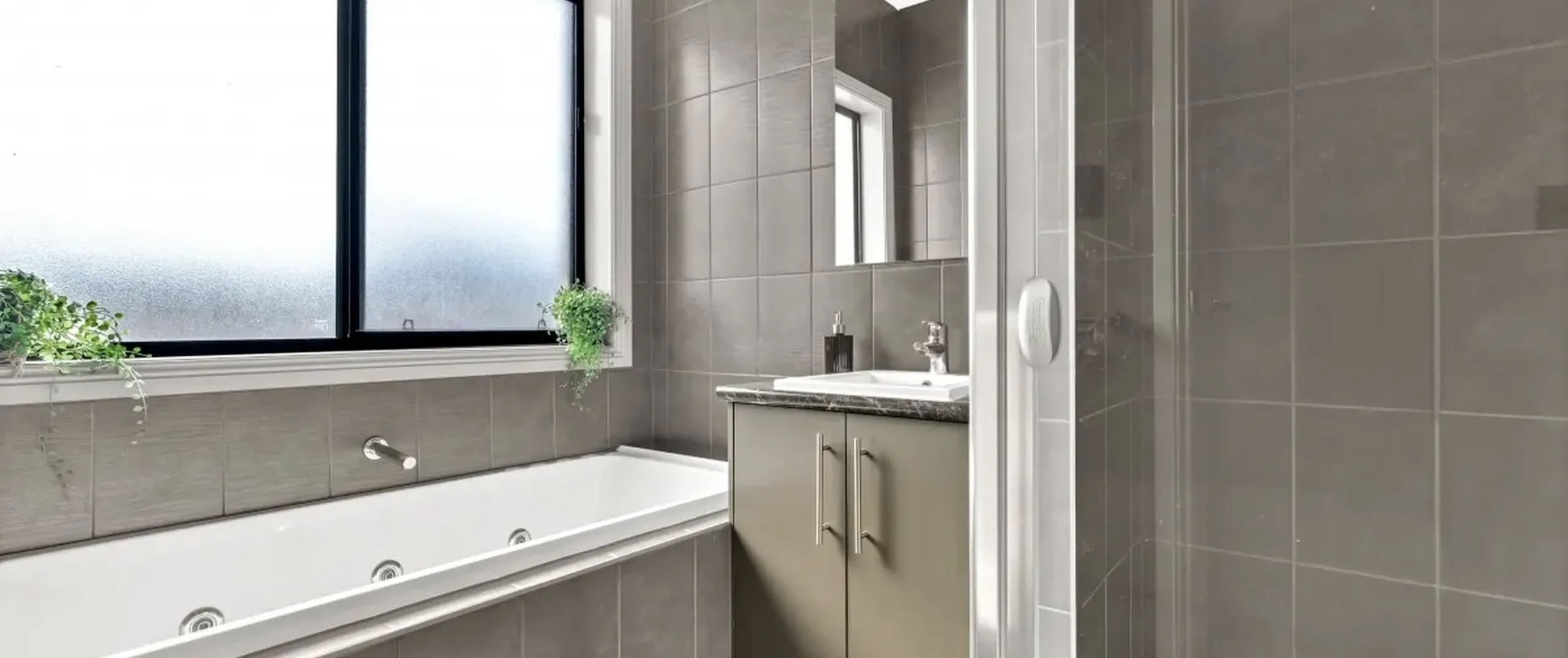 - Main bathroom with floor to ceiling tiles, separate shower and luxurious 12 jet spa bath