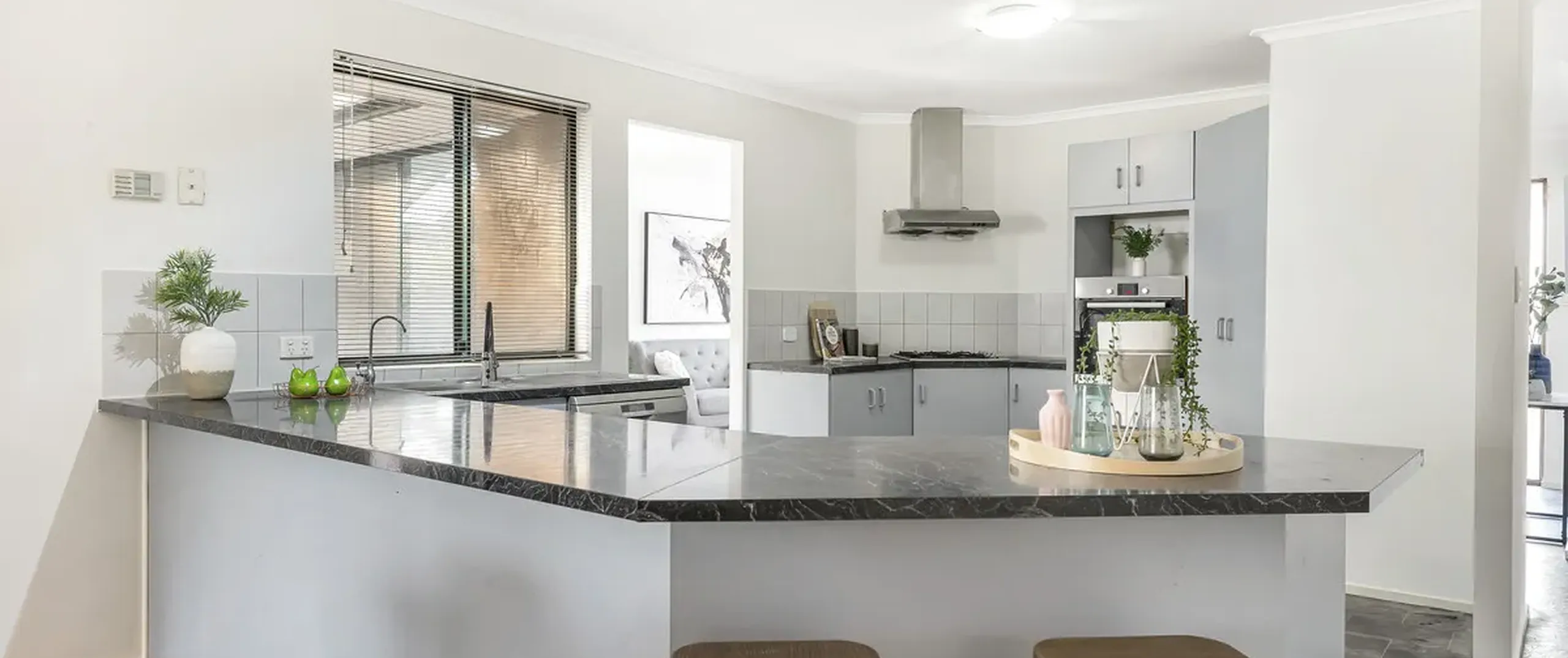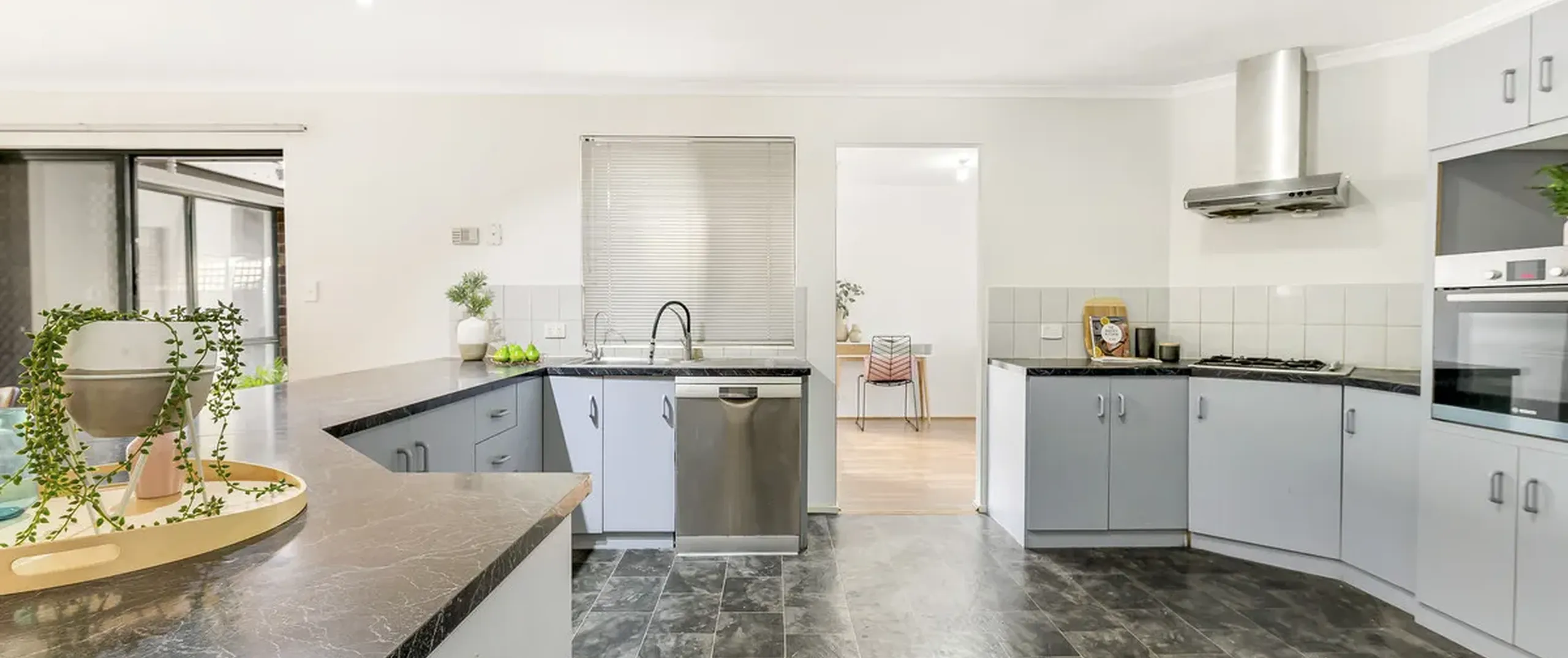 - Modern kitchen with gas cooktop, dishwasher and ample bench and cupboard space