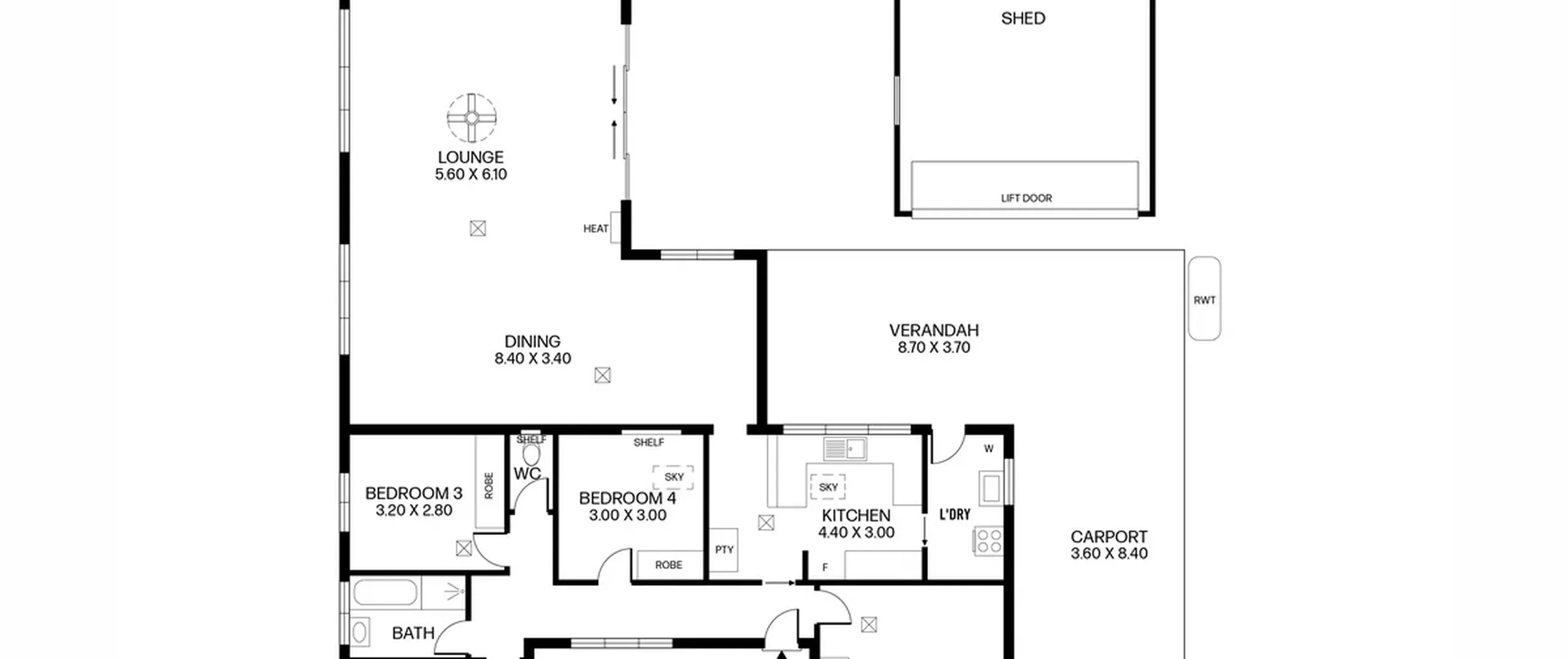 - Secure carport with automatic roller door and drive through access to additional garage with lift door