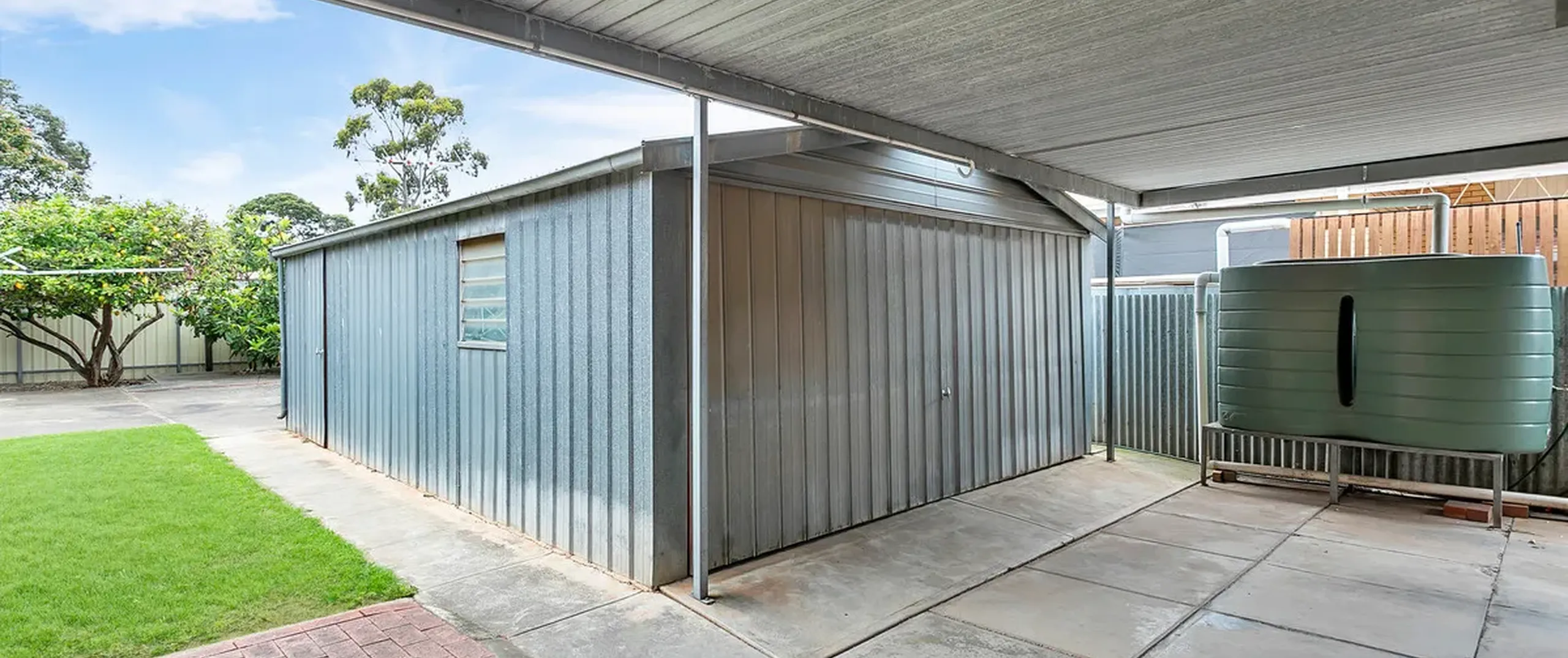 - Large, fully fenced yard with established gardens, various fruit trees, 1100L rain water tank and garden shed