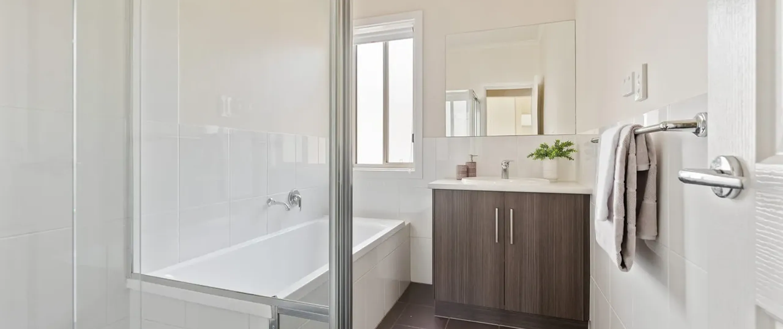 - Main bathroom with separate bath and shower