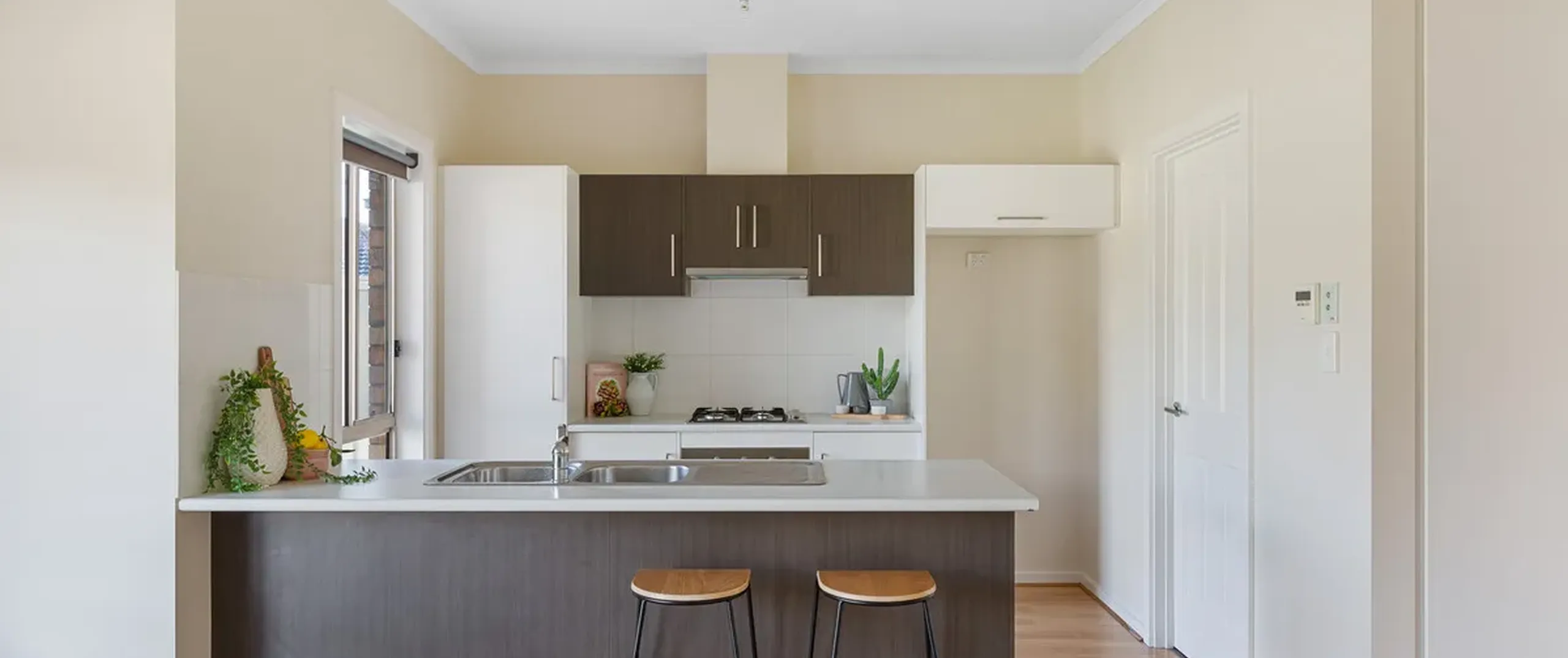 - Stylish kitchen with stainless steel appliances, gas cooktop and ample bench and cupboard space