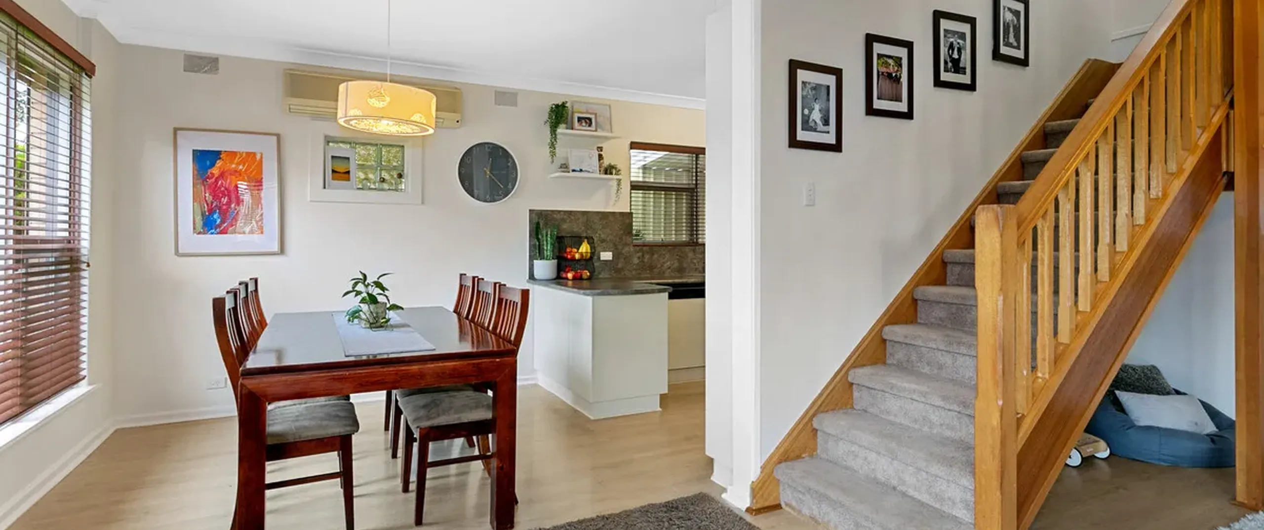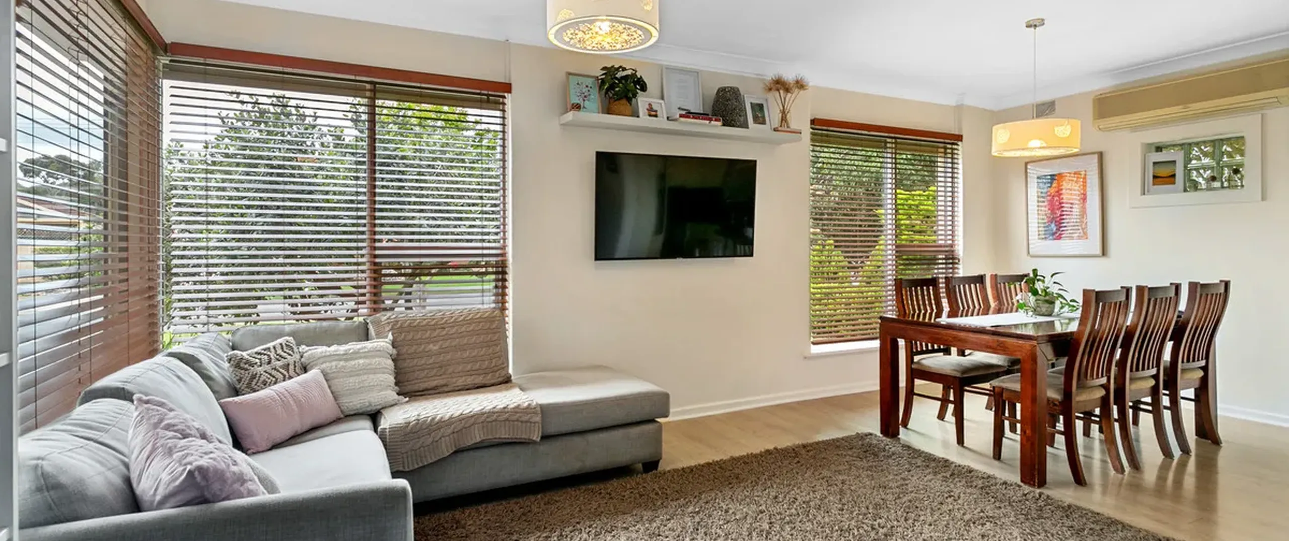 - Light filled and spacious open plan living/dining area with split system air conditioner
