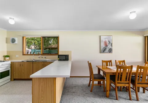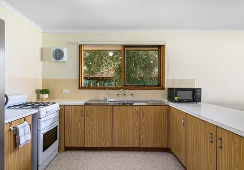 - Original kitchen with gas cooktop, double bowl sink and ample cupboard and bench space