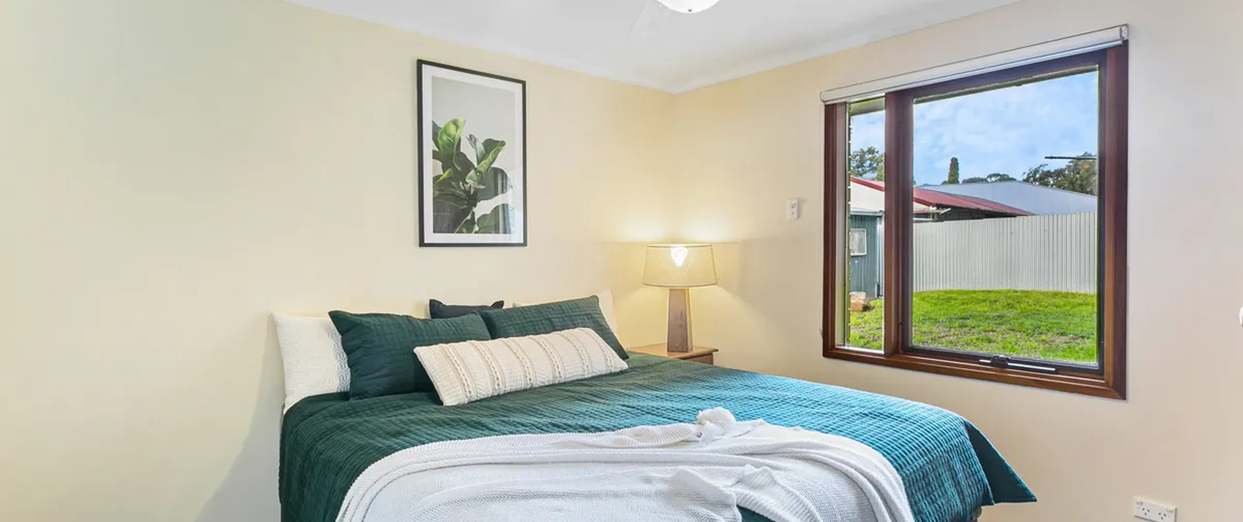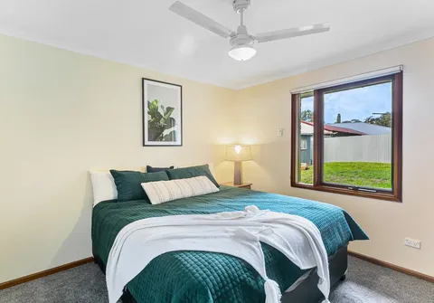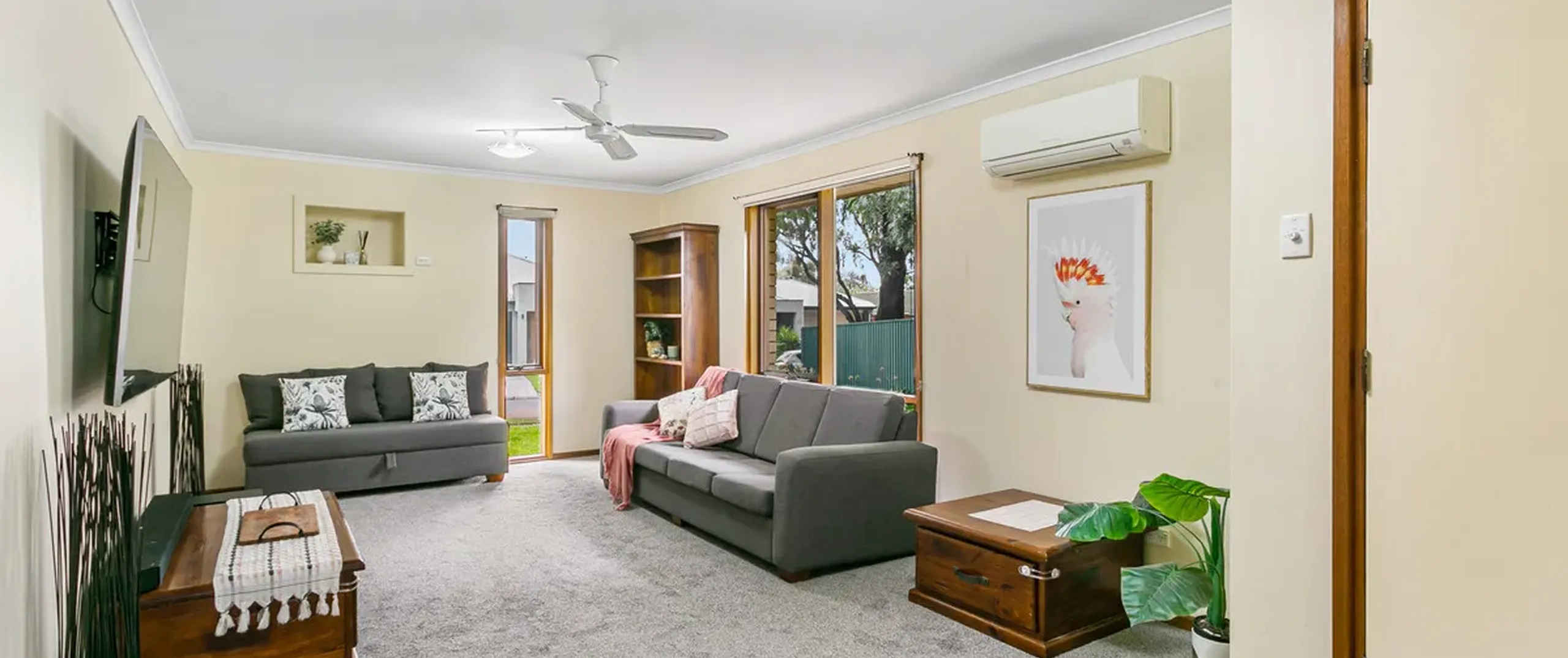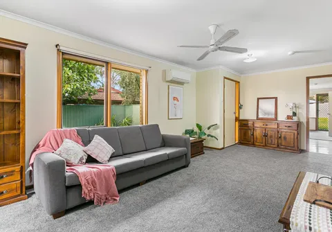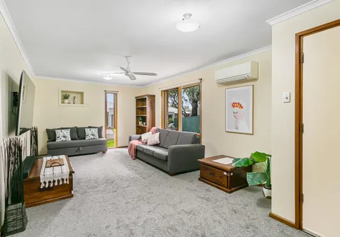 - Spacious light-filled lounge room with ceiling fan and split system heating and cooling