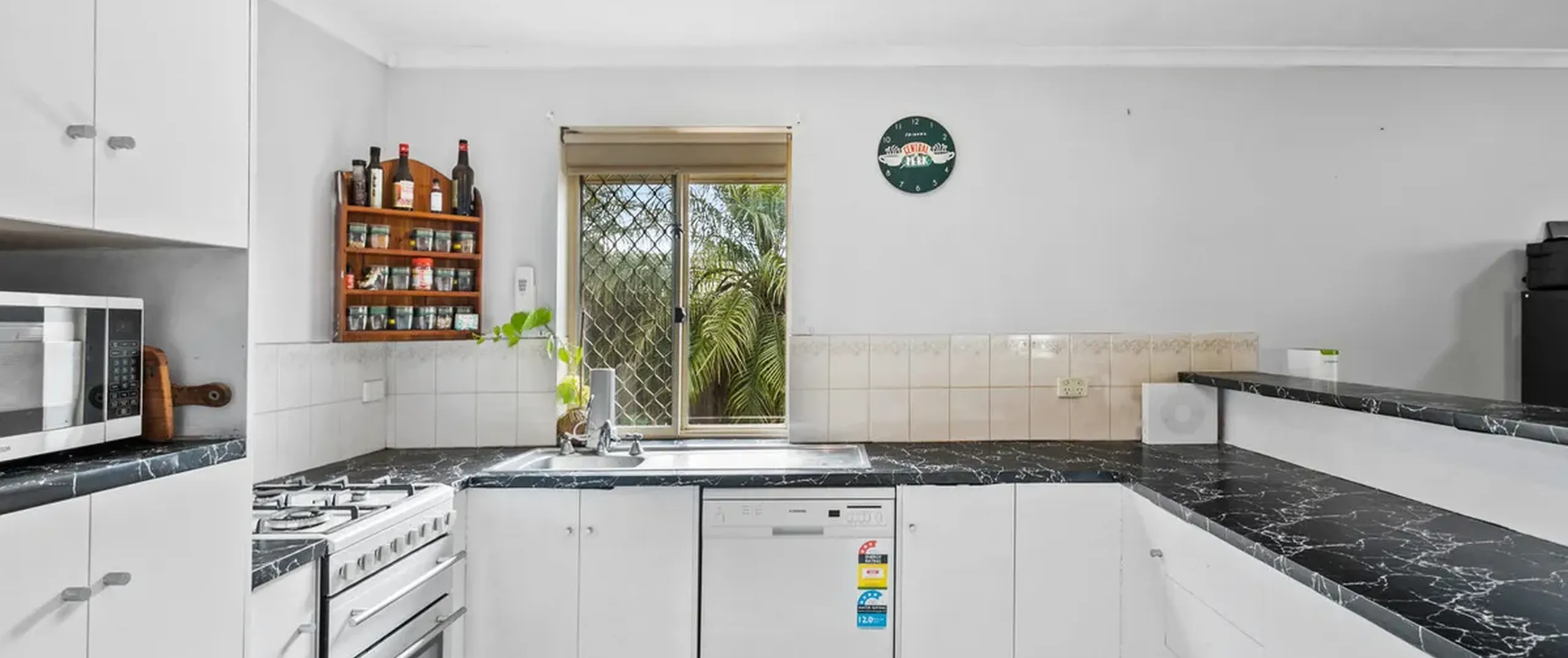- Stylish kitchen with dishwasher, gas cooktop and oven, pantry, ample cupboard and bench space with breakfast bar