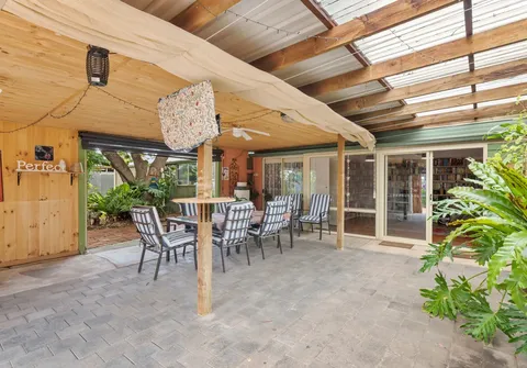 For those who love to entertain, an impressive entertaining area awaits and opens up to the large scenic yard, with plenty of space to cook a barbecue and an abundance of well-established trees and tranquil garden beds.