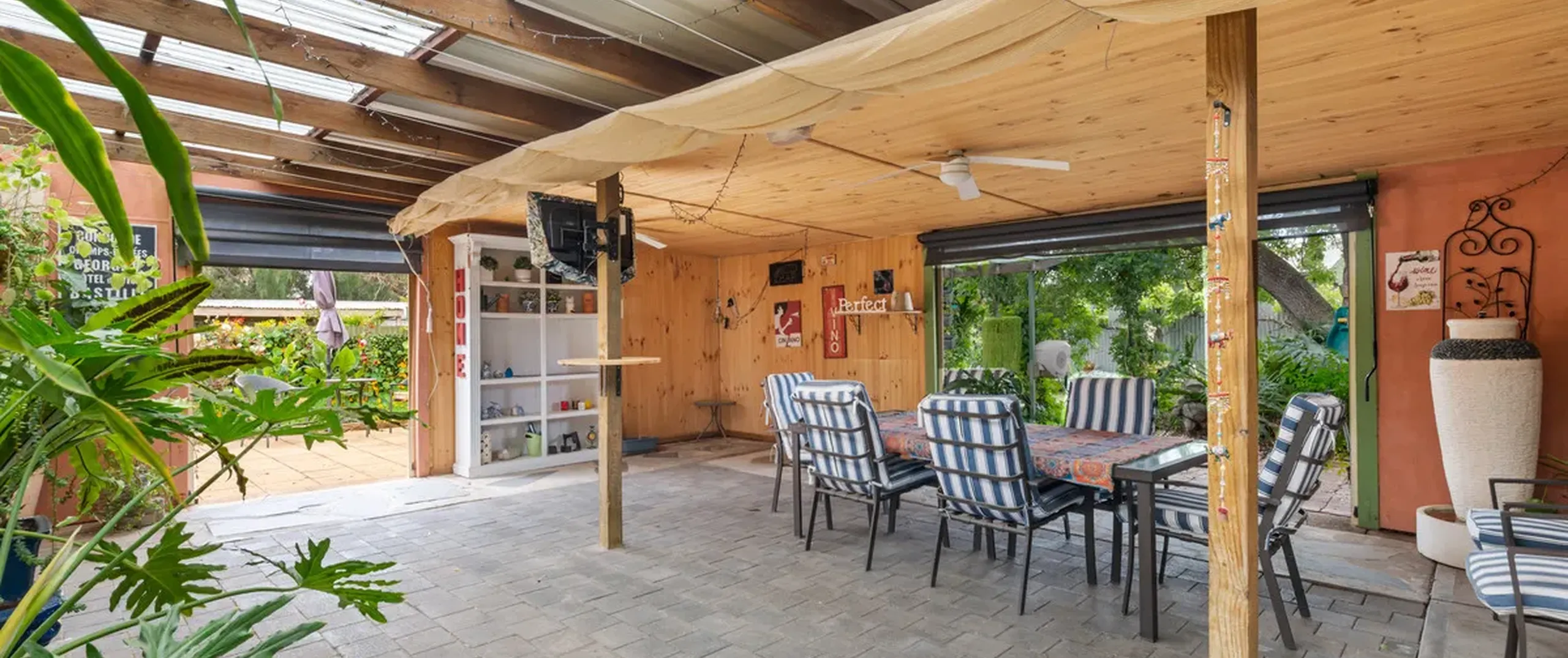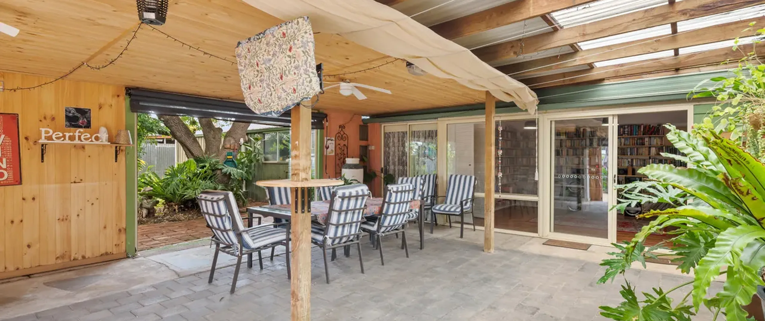 - Expansive undercover outdoor entertaining area with two ceiling fans