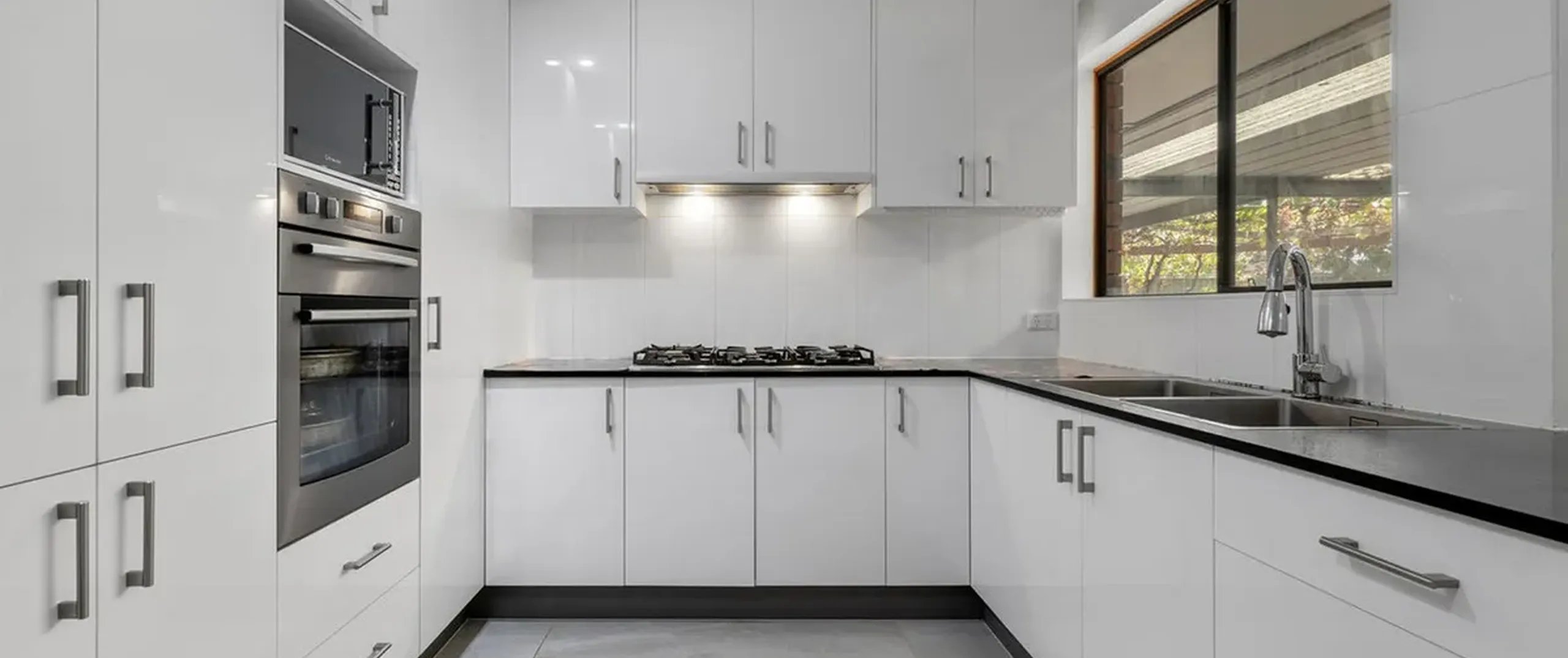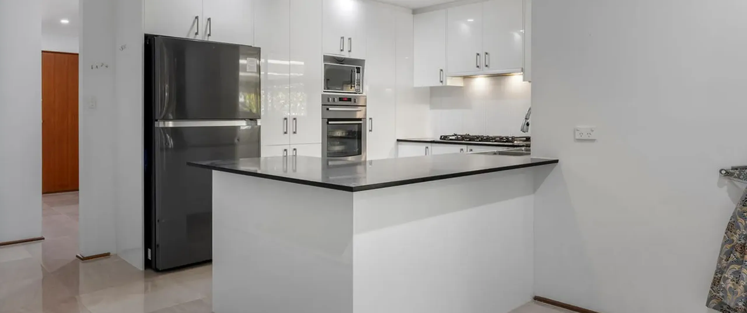 - Modern kitchen with gas cooktop, ample cupboard and bench space