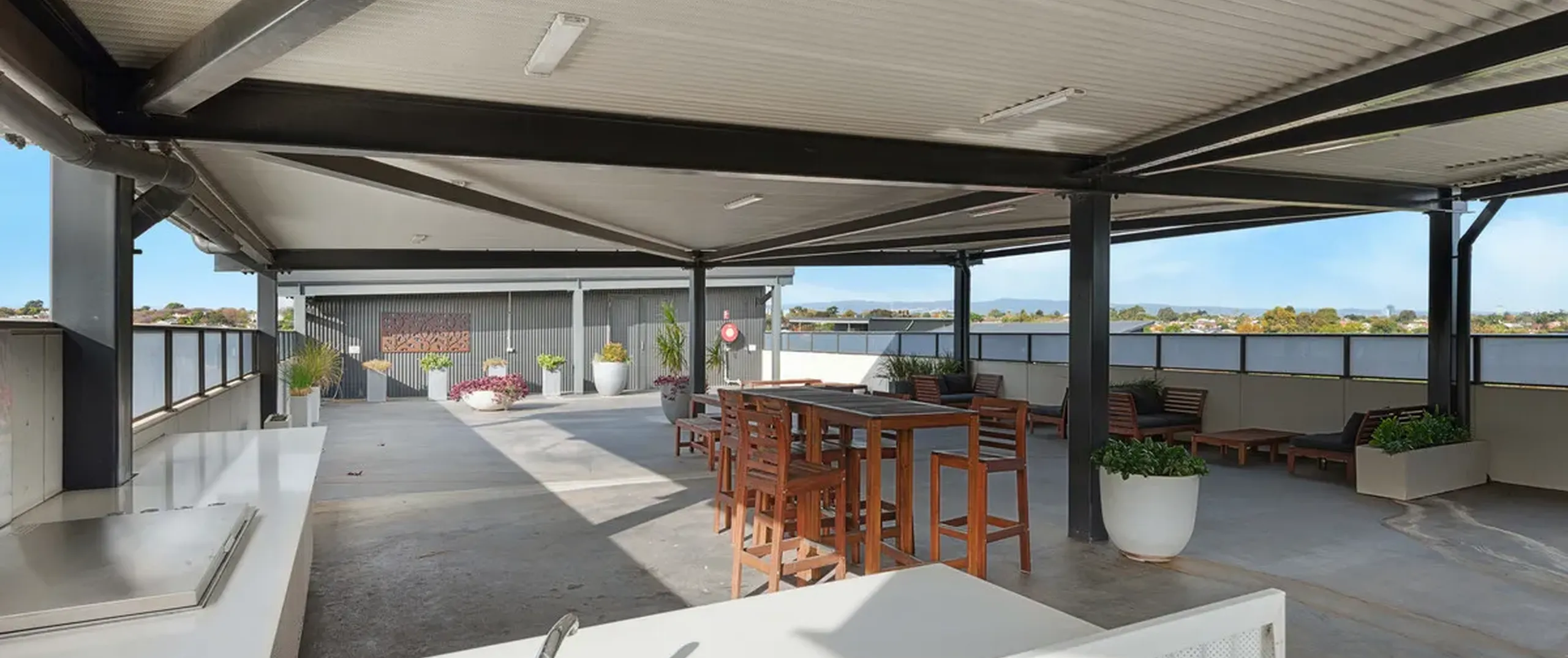 - Access to common rooftop entertaining area with large undercover pergola, BBQ, seating and day beds