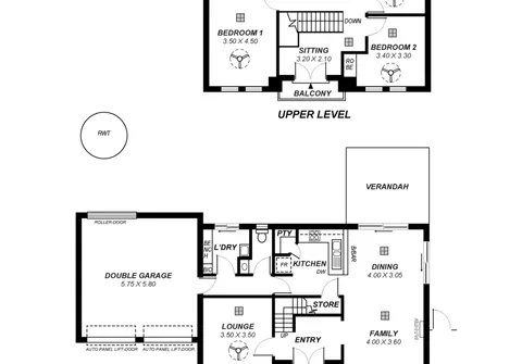 -Double garage with automatic panel lift roller door, rear access roller door and direct internal access