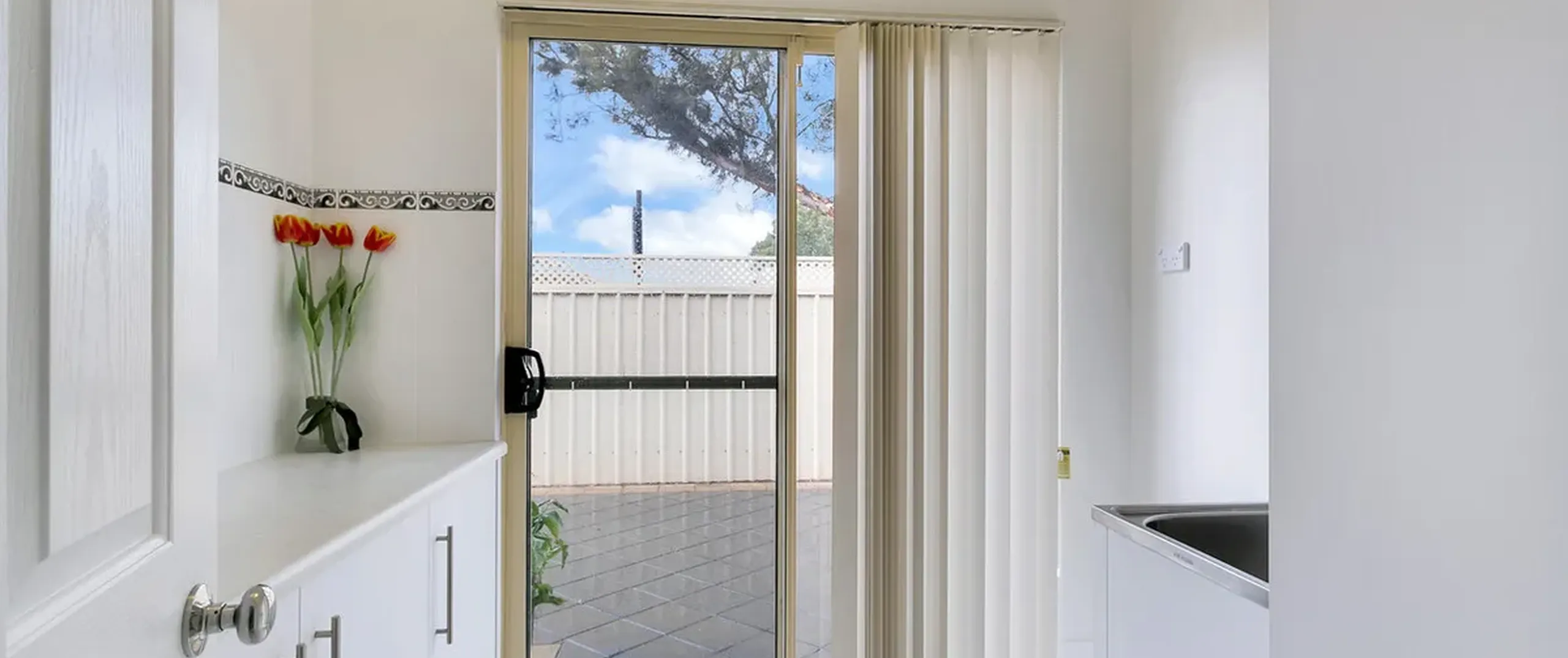 - Separate laundry with bench and built-in cupboard