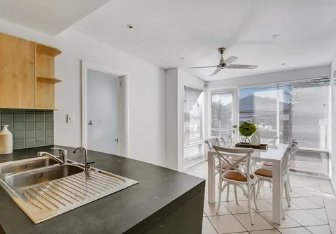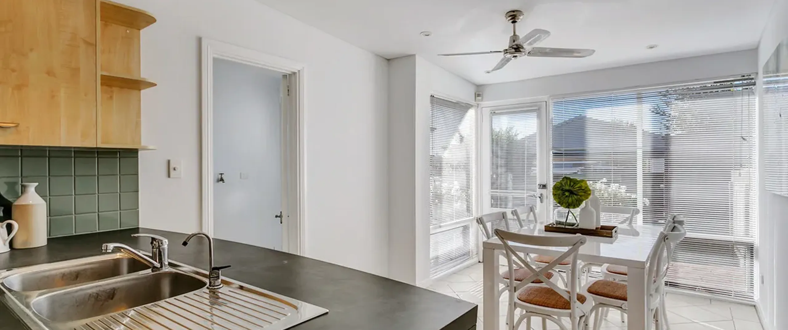 - Light filled dining room with ceiling fan