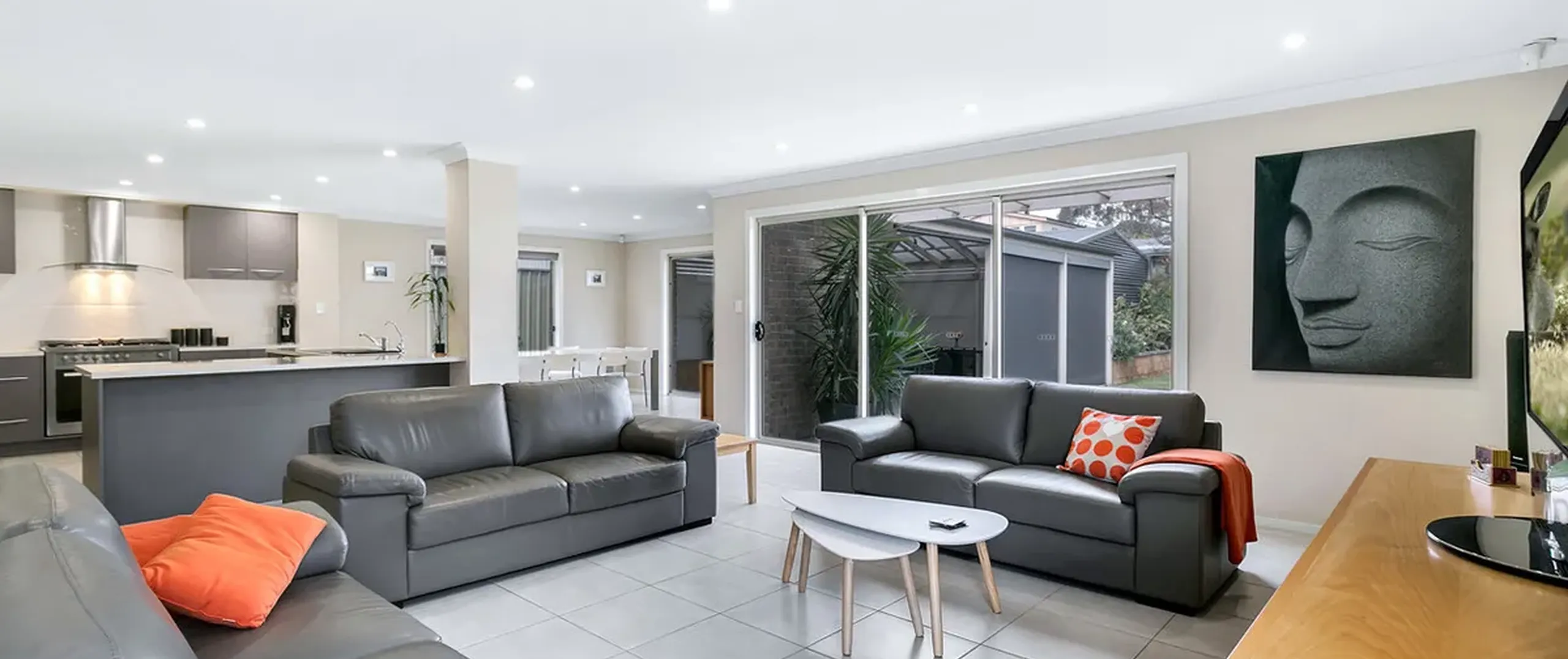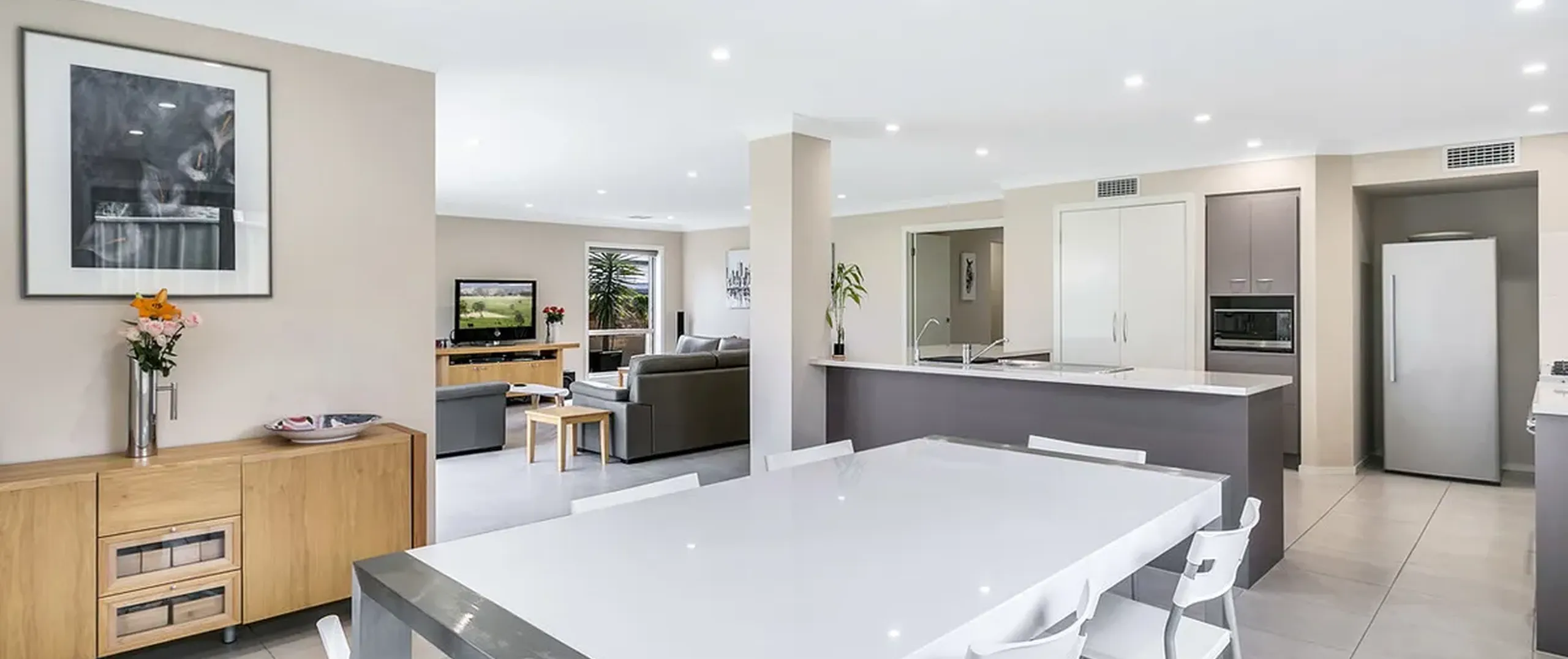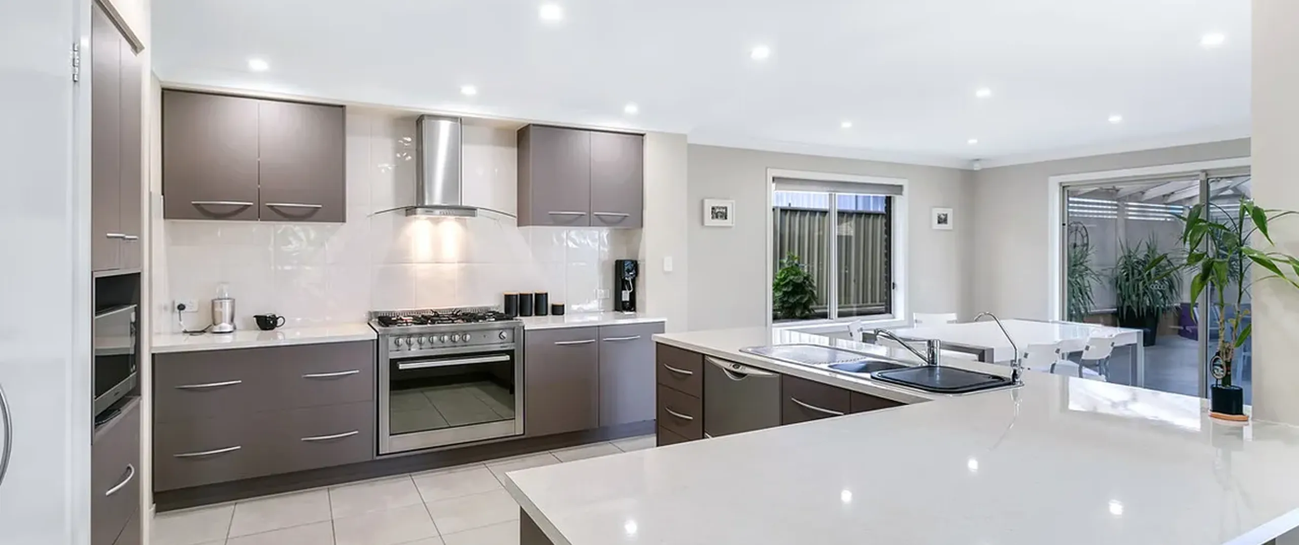 - Modern kitchen with stainless steel appliances, 900mm gas cooktop, double drawer dishwasher and ample bench and cupboard space