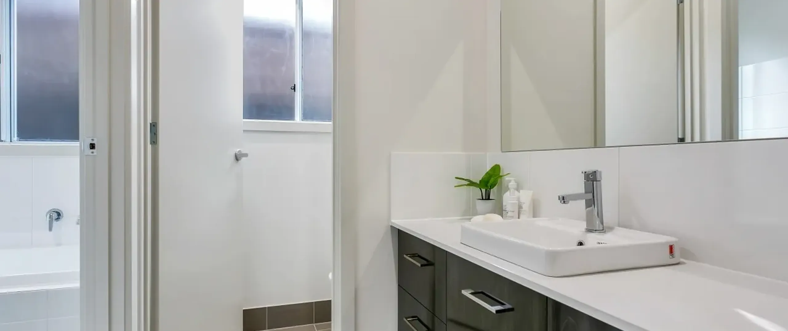- Three-way main bathroom and separate laundry, both with Caesarstone benchtops