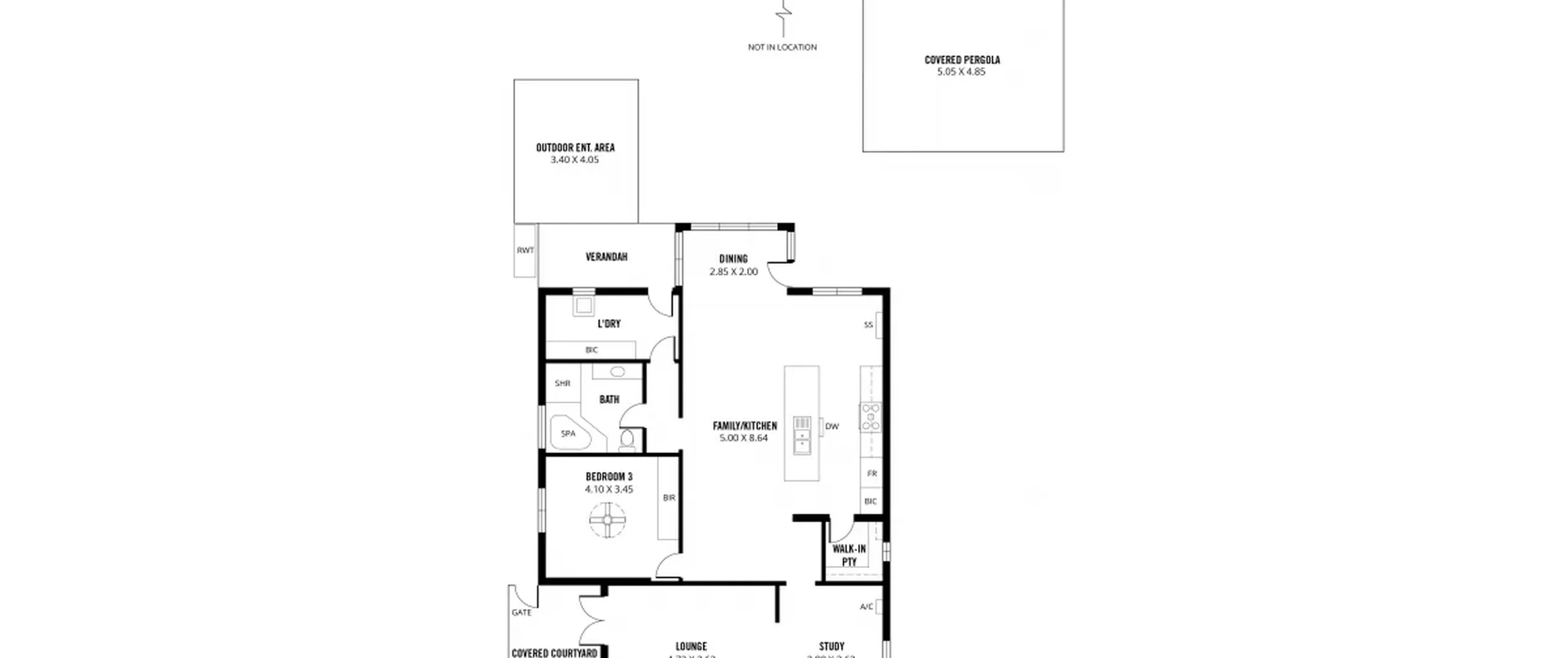 - Open study area with air conditioner, which could be easily converted to a 4th bedroom