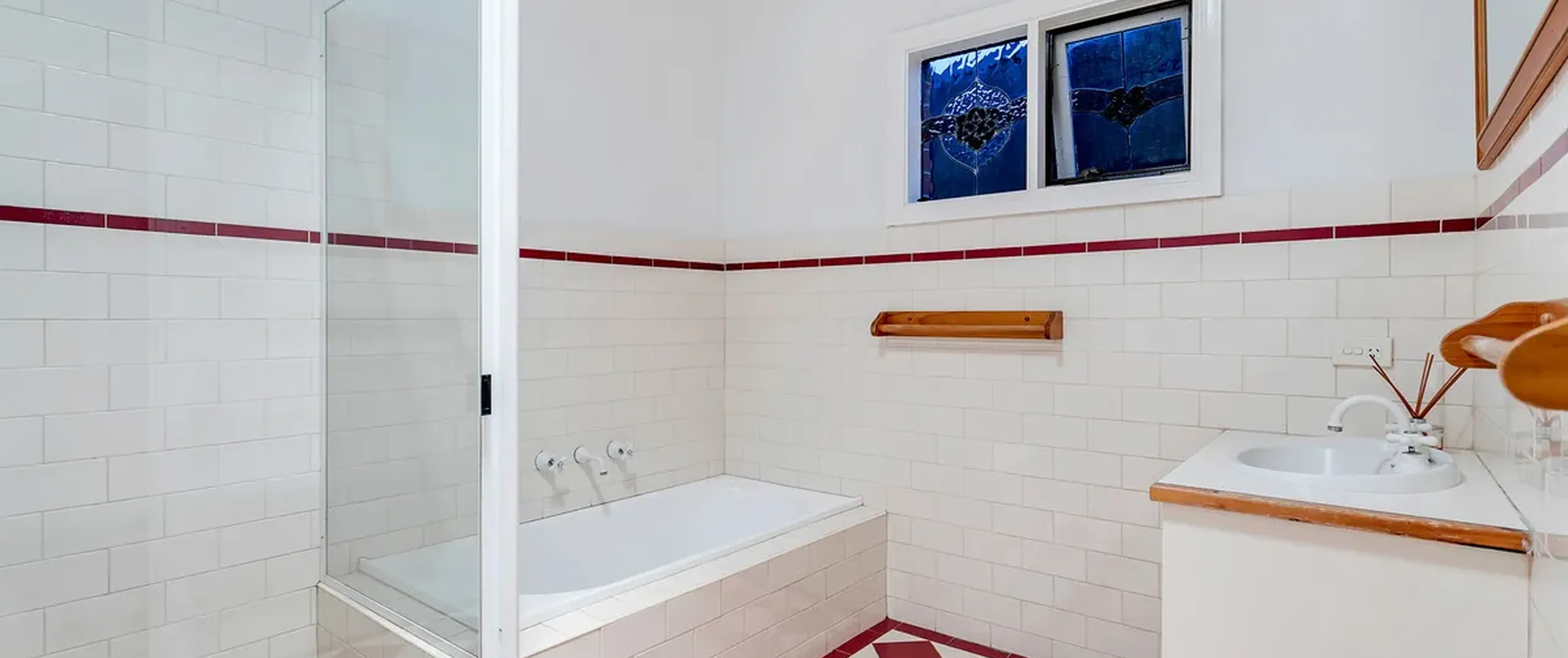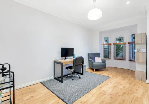- Convenient spacious second lounge room with a beautiful bay window with stained glass