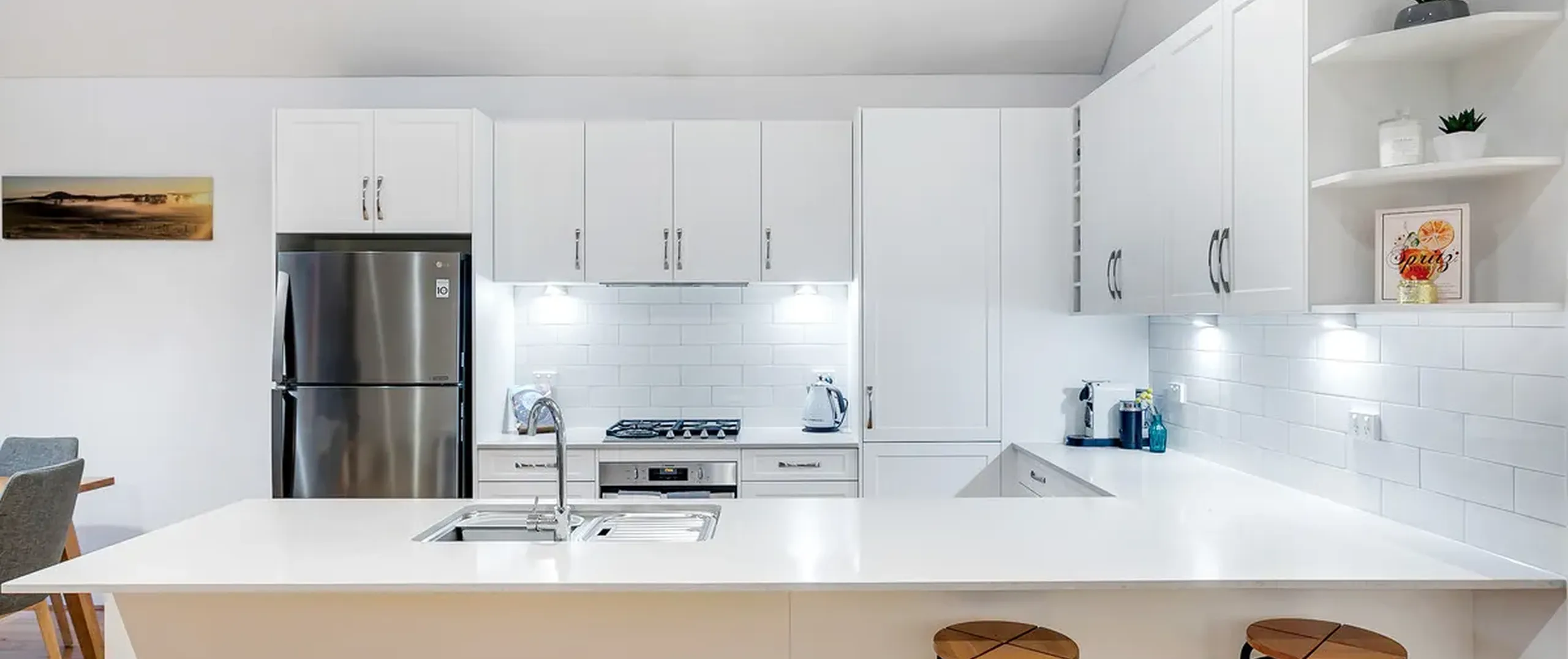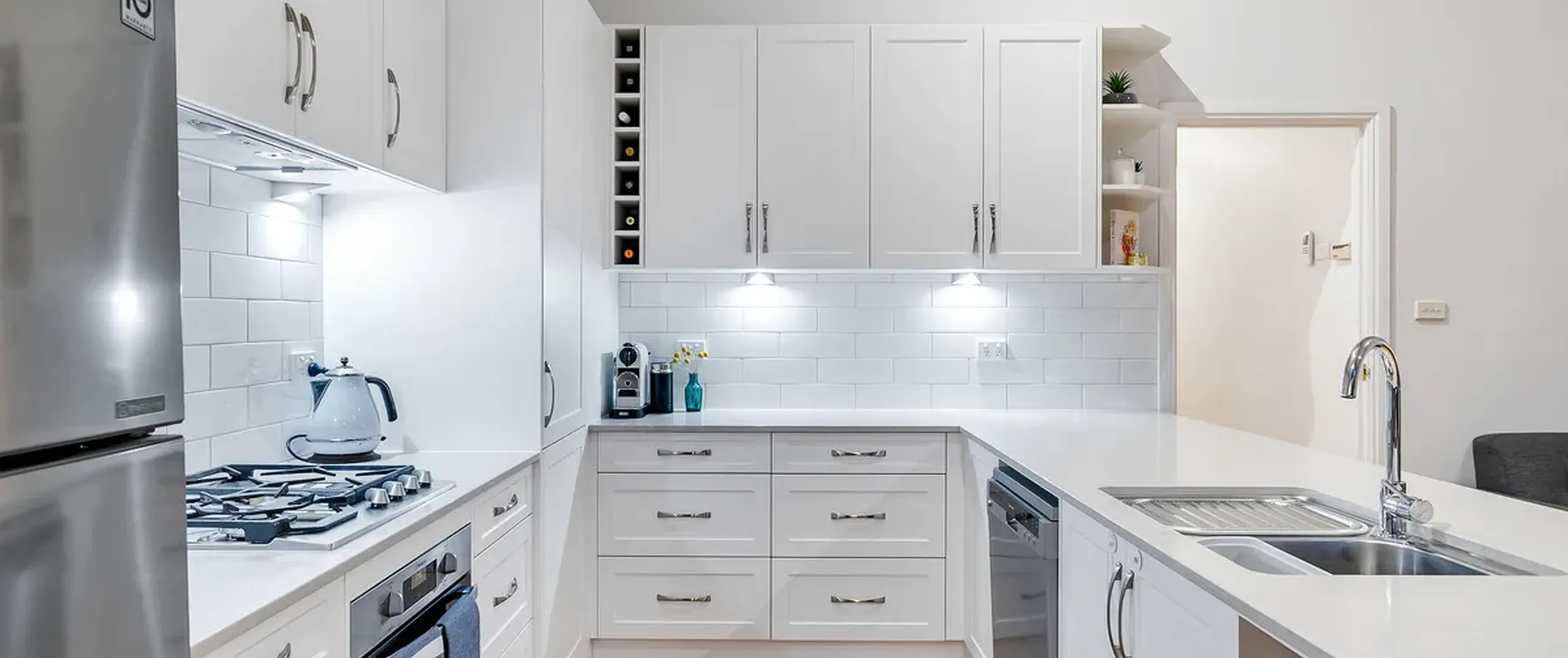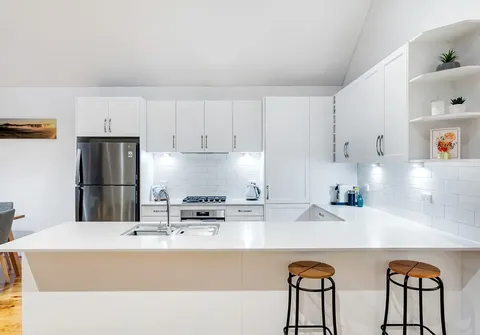 - Clean and classic kitchen with stainless steel appliances, gas cooktop, dishwasher, wine storage and breakfast bar