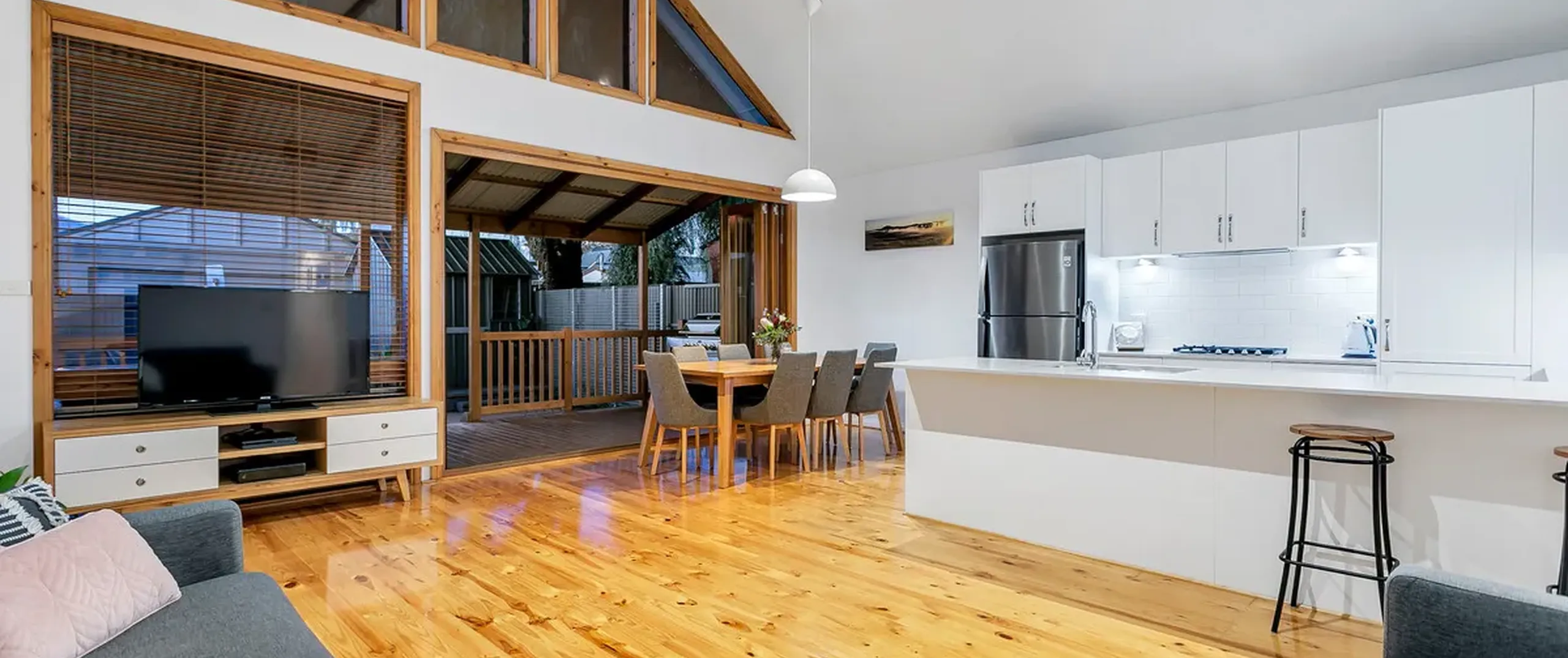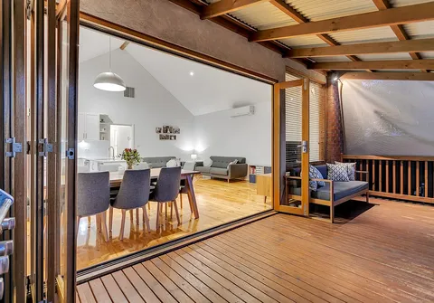 Nestled on a low maintenance courtyard-size block that offers rear lane access and boasting a beautiful open plan living area featuring polished floorboards, bi-folding doors that open onto the raised timber deck and a stunning pitched roof, giving the home a great sense of light and space.