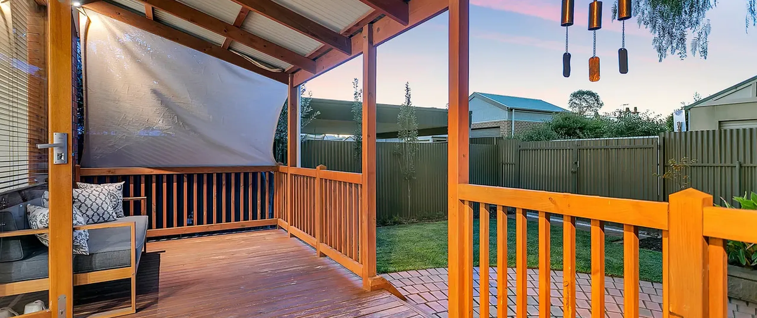 - Raised decked undercover outdoor entertaining area for all year round entertaining