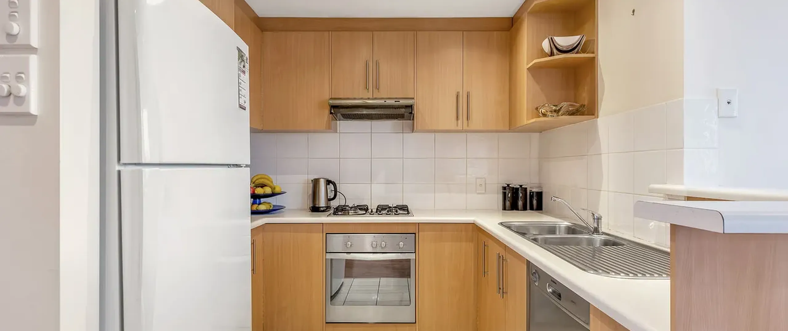 - Practical kitchen with ample cupboard and bench space and stainless steel appliances