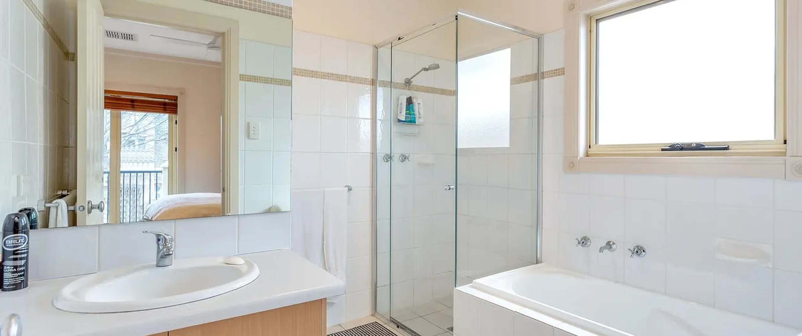 - Large bedroom 1 with walk-in robe, ceiling fan and balcony access